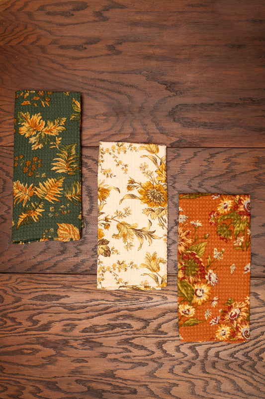 Marguerite & Musical Floral Tea Towels Bundle, Set of 3