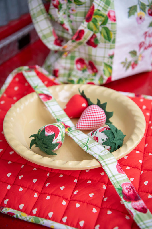 Strawberry Patchwork Skillet Handle Covers, Set of 4