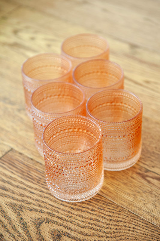 Hobnail Beaded Rose Gold Drinking Glasses — Set of 6, 10 oz.