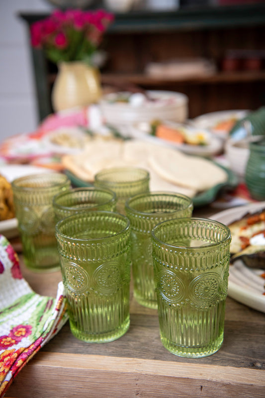 Hobnail Beaded Sage Green Drinking Glasses — Set of 6, 13 oz.