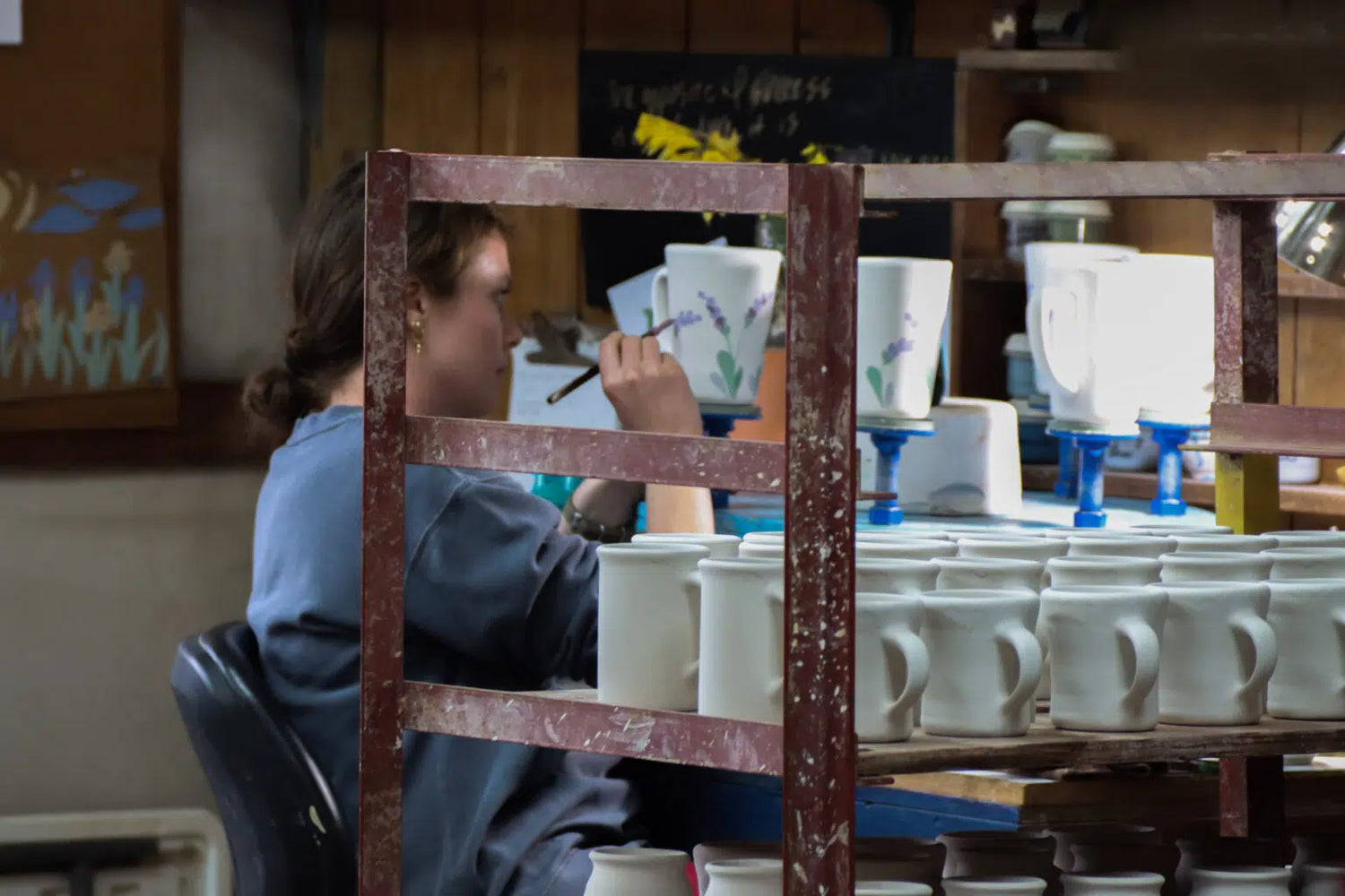 Masterfully created and painted by hand by skilled artisans, no two pieces of Emerson Pottery are exactly identical. Every step — mixing clay, forming, finishing, glazing, painting, firing, packing, and shipping — is completed by people. Each piece of Emerson pottery goes through at least eight pairs of hands before finding its way into yours.