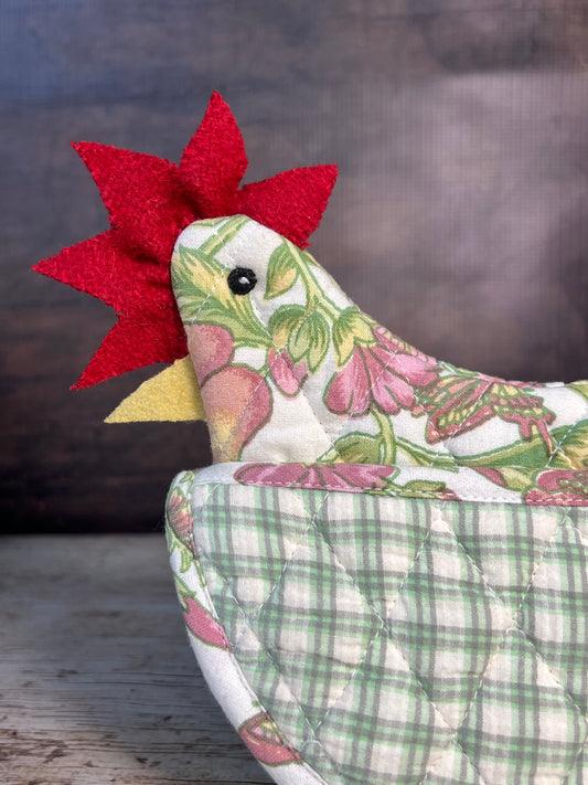 Happy Hen Potholder in Cream Floral