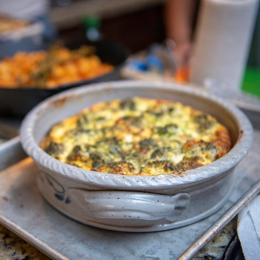 Emerson Pottery Frilly Pie Plate in Fields of Iris