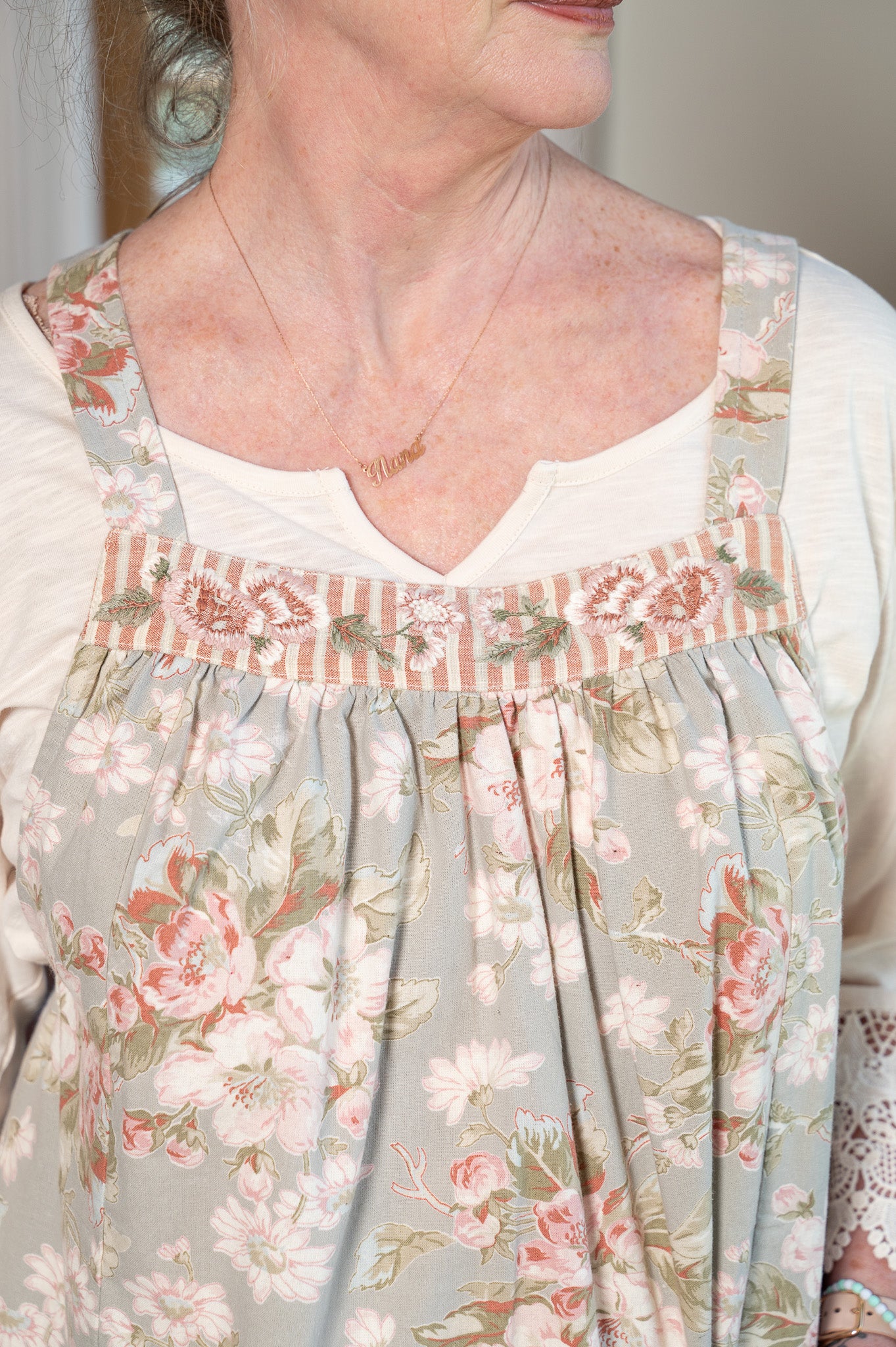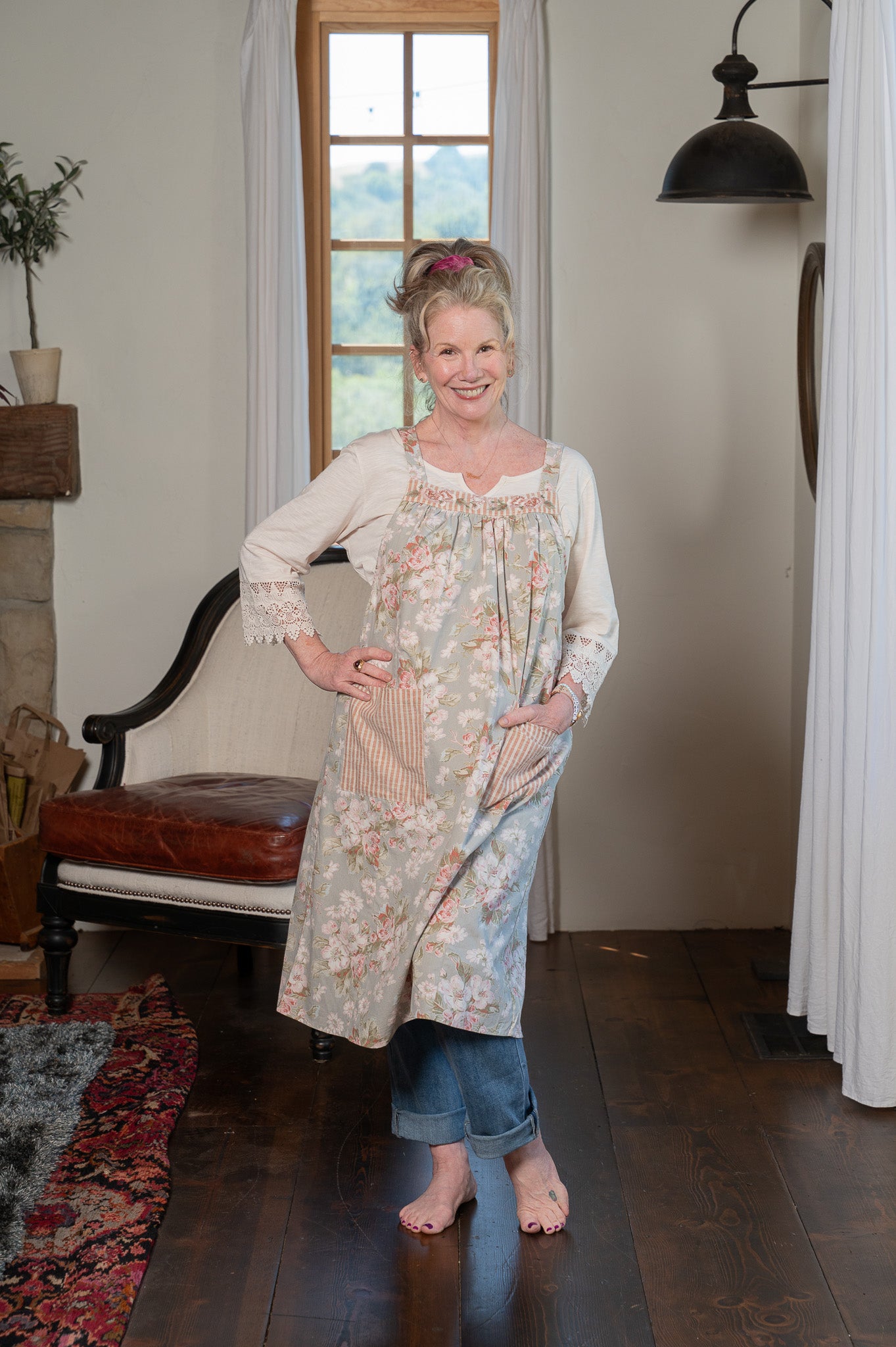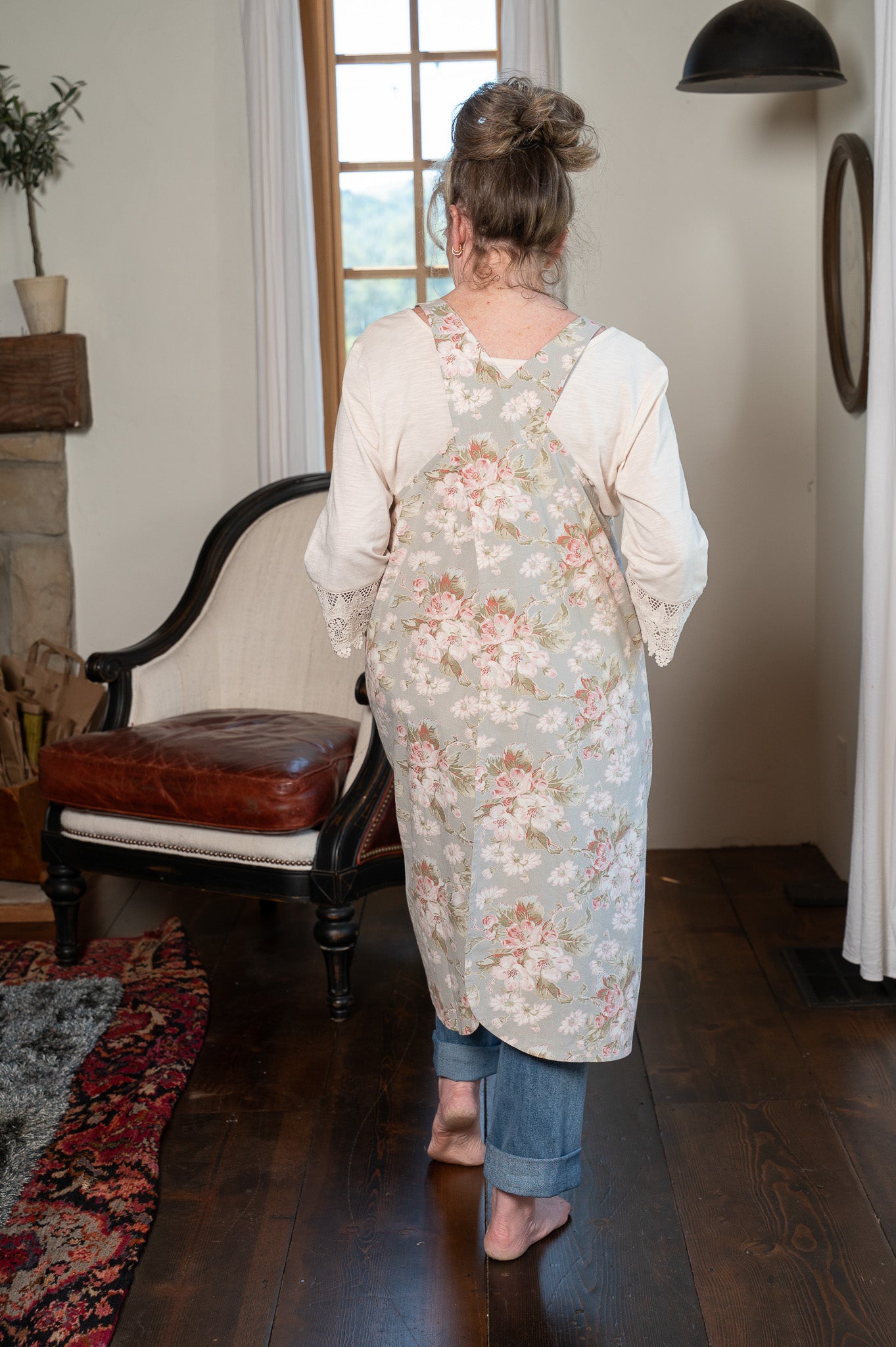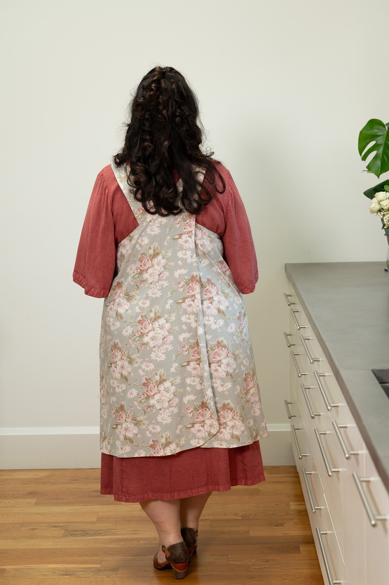 The Apple Blossom Apron is as pretty as it is practical, stitched from soft 100% cotton and graced with a delicate floral print that feels like spring in full bloom. Sweetly gathered at the top with gentle pleats, it drapes with ease while giving you room to move and work comfortably. Two roomy striped patch pockets keep your essentials close at hand—whether that’s a wooden spoon, seed packets, or your phone while you bake. Thoughtful and timeless, it’s the kind of apron that makes the everyday feel just a little more beautiful.