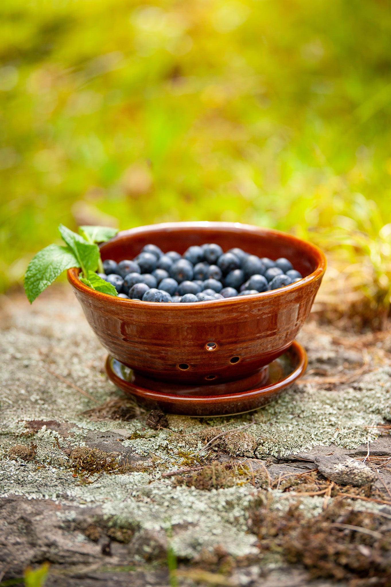Handmade and absolutely ingenious for keeping freshly washed berries unbruised and well-presenting, this stoneware berry bowl from Emerson Creek Pottery will be the cutest little colander in your kitchen! In a rich & rustic copper clay glaze, this set includes a perforated bowl with a darling saucer for catching excess water, and both pieces are beautifully accentuated with wheel-spun ridges, made by the potter's hands.