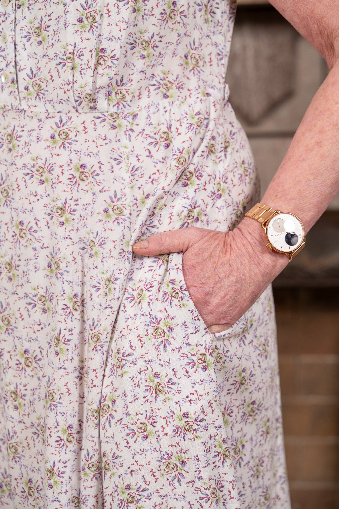 The Britan Garden Dress flows in 100% rayon with a slightly fitted silhouette, buttons running down the front bodice, and a sailor collar finished with a tiny flounce that gives the neckline a sweet, old-world charm. A button tieback at the waist lets you pull things in when you want to, and side seam pockets mean your hands always have somewhere to go. Dressed up or completely undone, this maxi dress has the rare quality of looking like it was made specifically for you.
