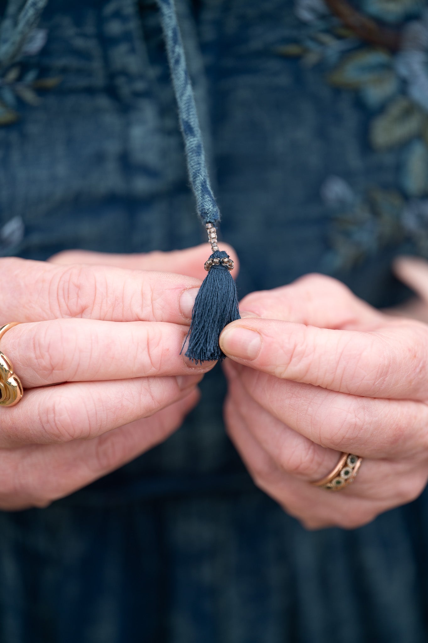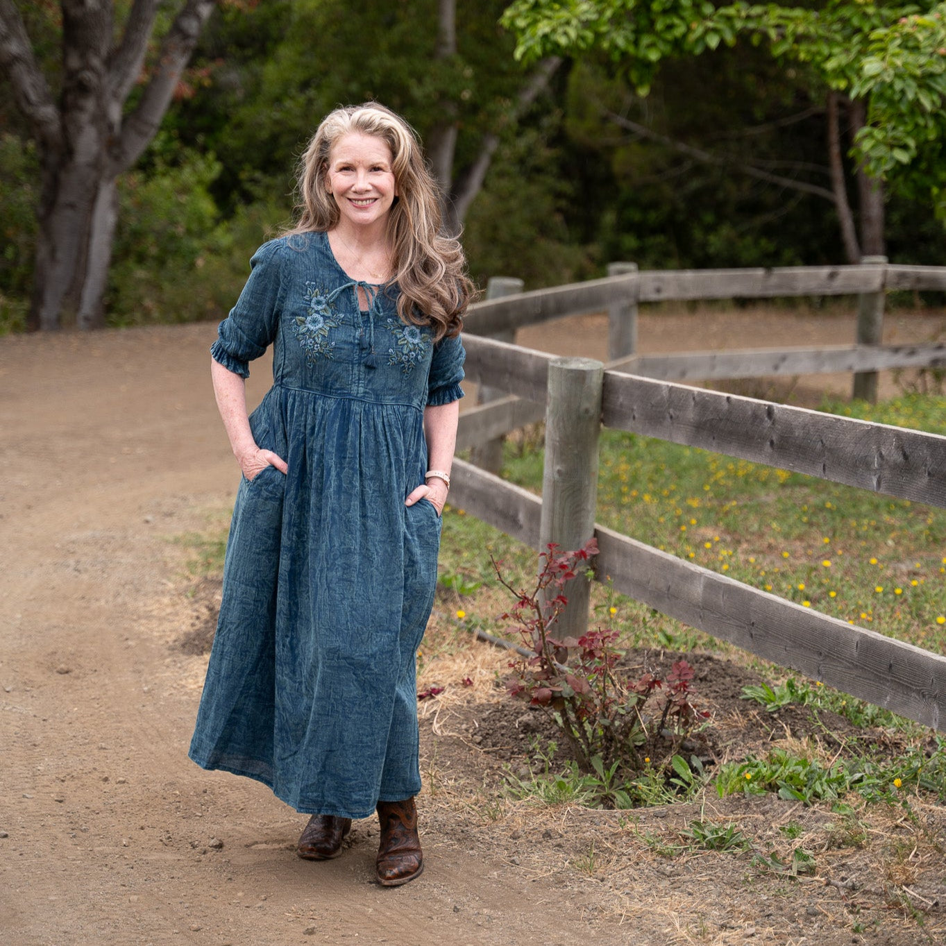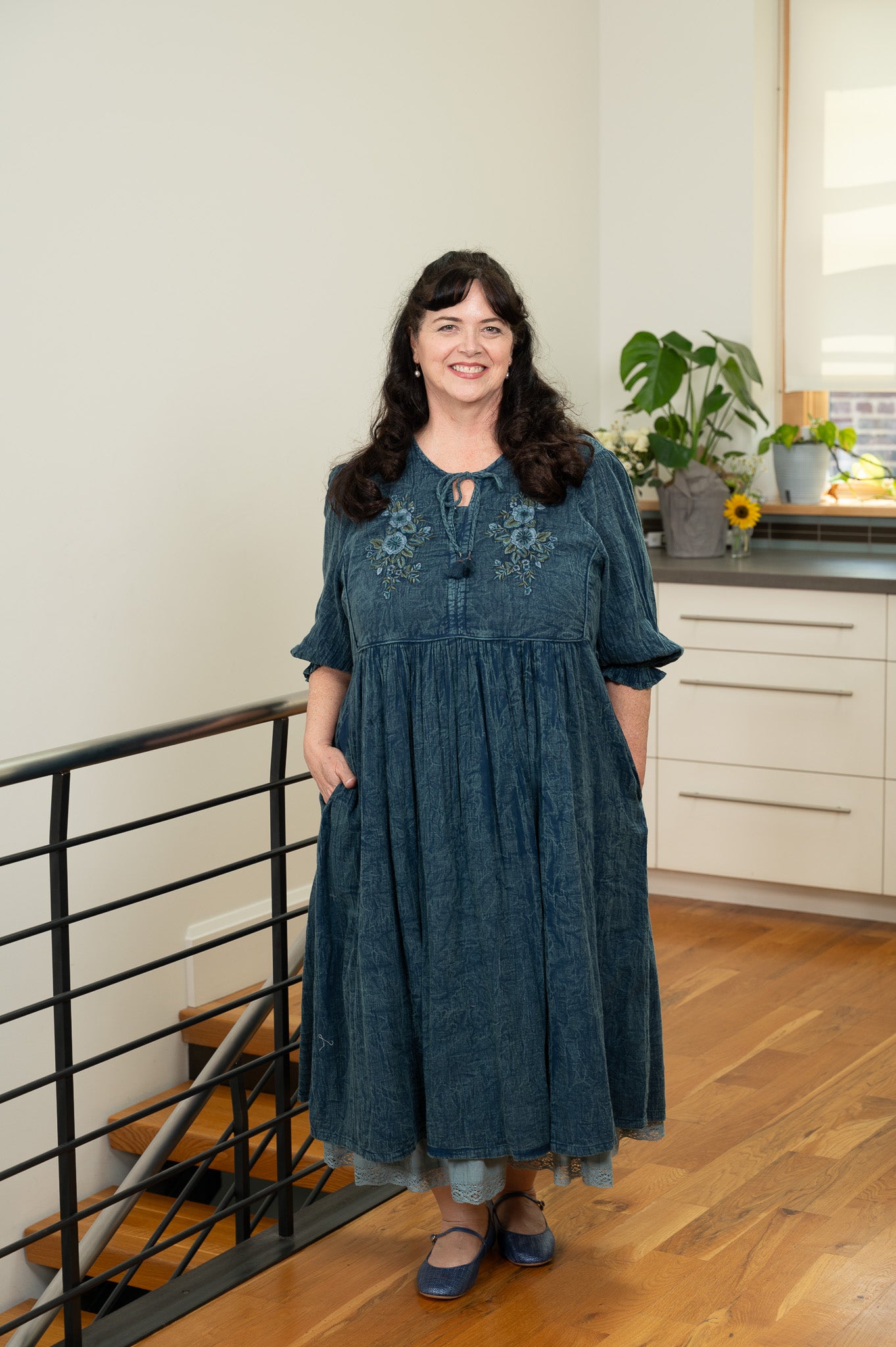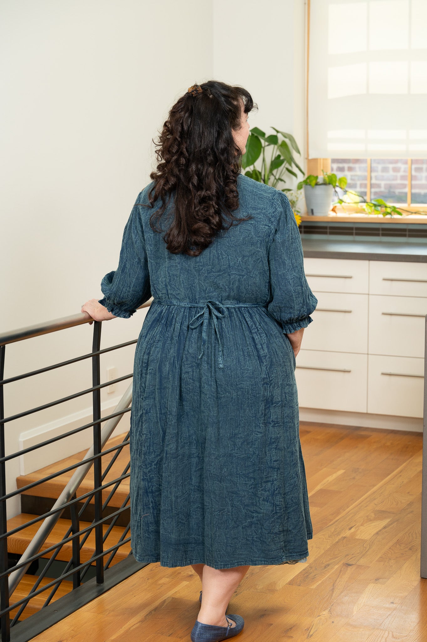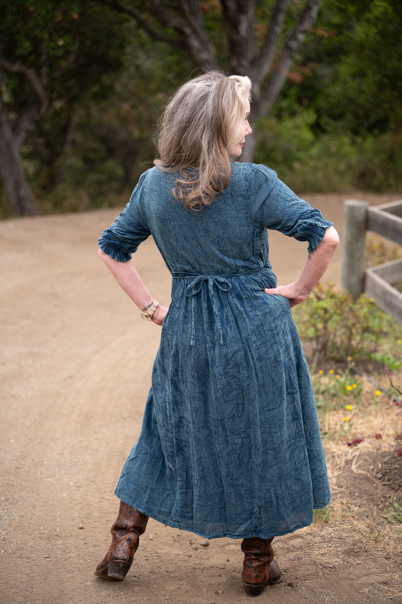 Back by popular demand in a gorgeous dark blue, we bring you the Celeste Dress! An easy-yet-elegant addition to your seasonal collection, this cotton dress is instantly elevated by the gorgeous floral embroidery at the front bodice, sweet tie-bow closure at the neckline, and ruffle cuff detailing at the elbow length sleeves. Featuring a gathered empire waist with removable tie-string closure at the back, and a flowing skirt complete with handy side pockets, this darling dress is one for the books!