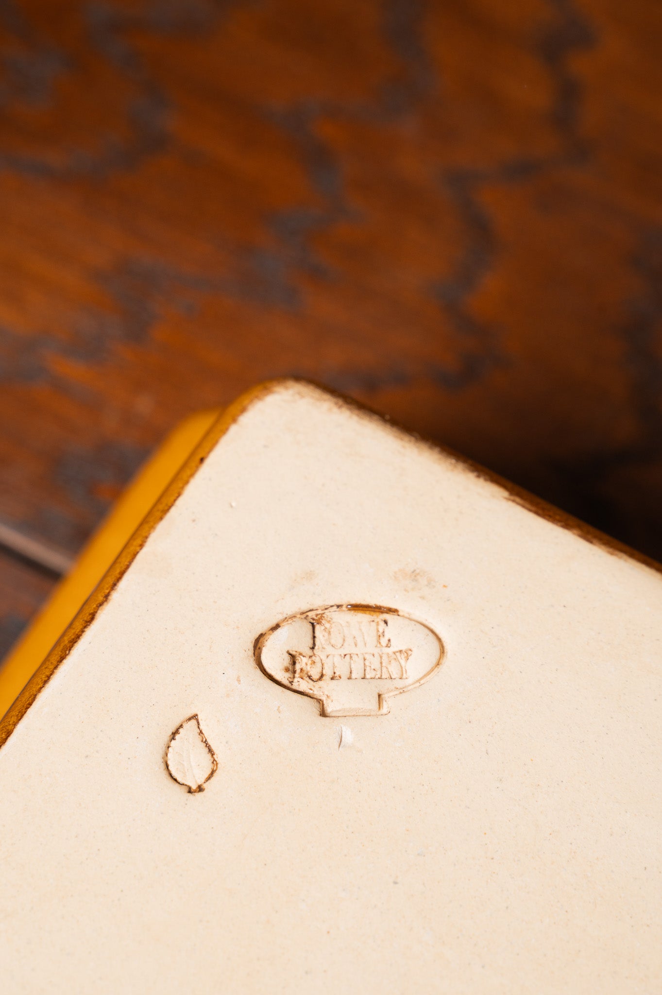 Our handcrafted Cinnamon Spice Ceramic Loaf Pan, created by the artisans at Rowe Pottery, is full of practical functionality and rustic, artisanal charm. Boasting a rustic cinnamon glaze, this stylish stoneware loaf pan is unrivaled at achieving an even bake for the perfect crusty-edge bread, dessert or hearty meatloaf every time. You'll find an artist's mark near the Rowe Pottery logo on each of the pieces that we offer at Modern Prairie. It adds an element of personalization that we think is so special.