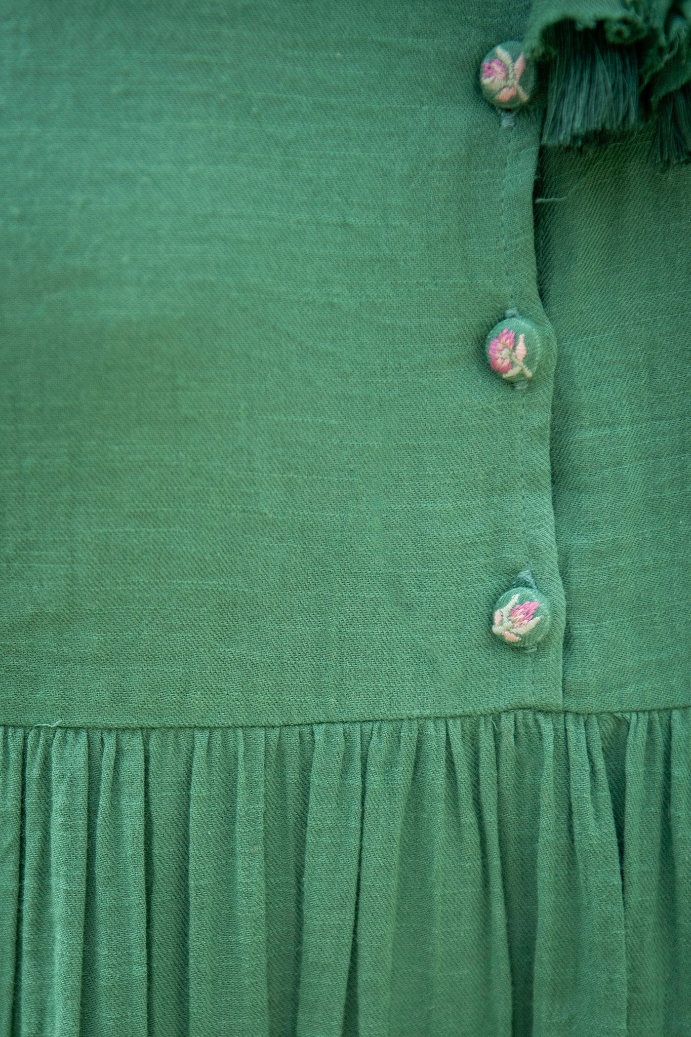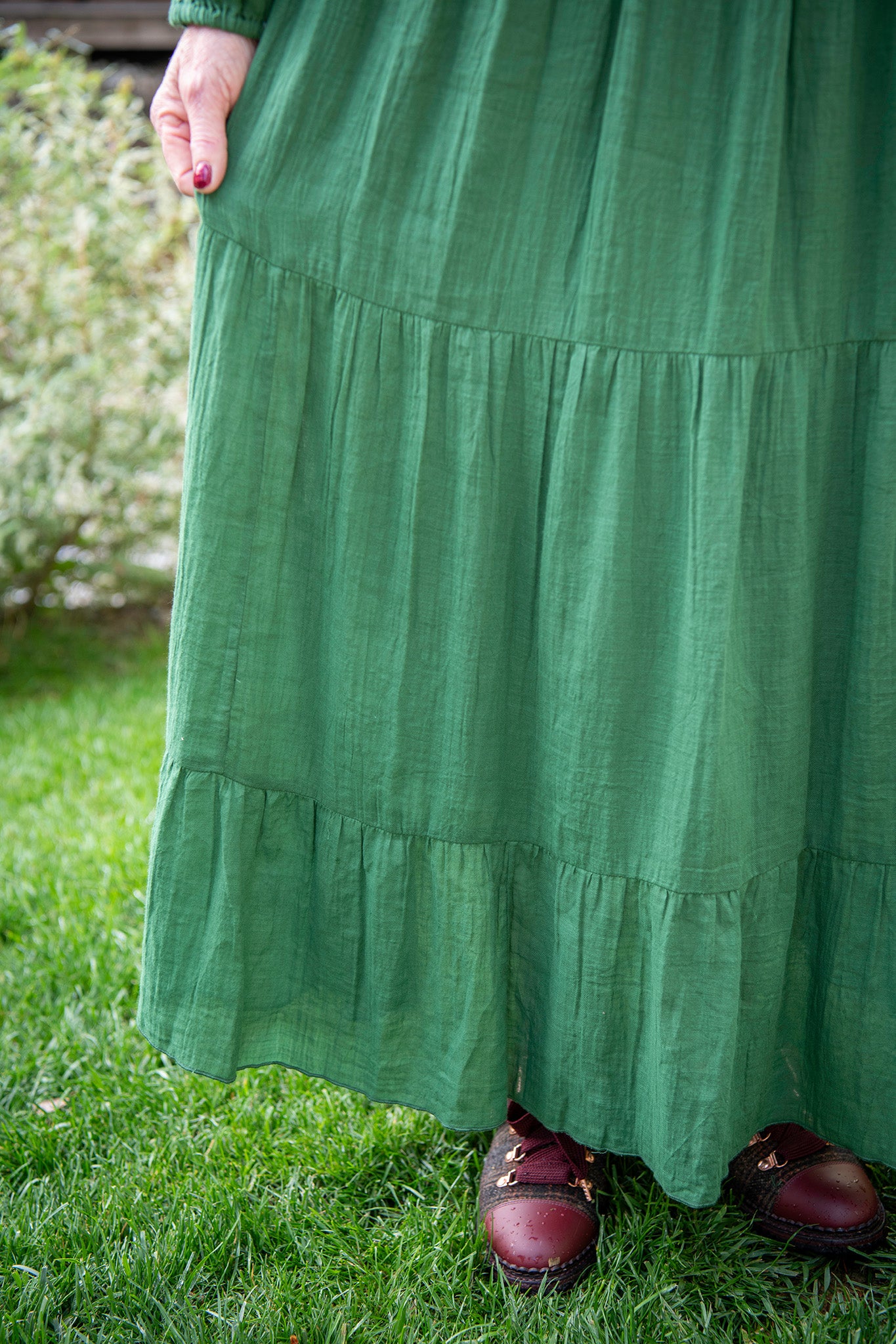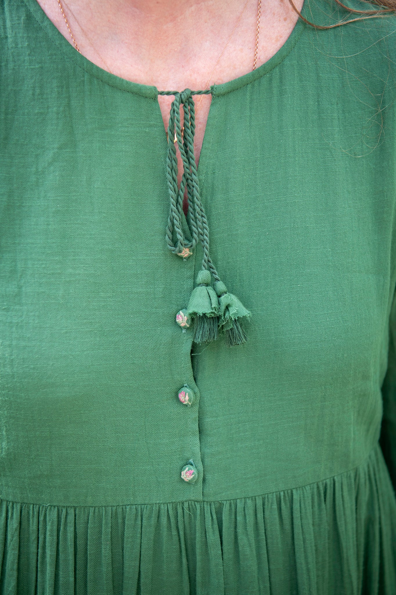 Step into effortless elegance with our Concerto Prairie Dress, a timeless piece that blends rustic charm with modern grace. This flowing, tiered dress is perfect for those cozy days spent outdoors or a night out with friends. The lush green hue evokes the beauty of nature, while the soft, lightweight fabric ensures you stay comfortable, no matter where your day takes you.