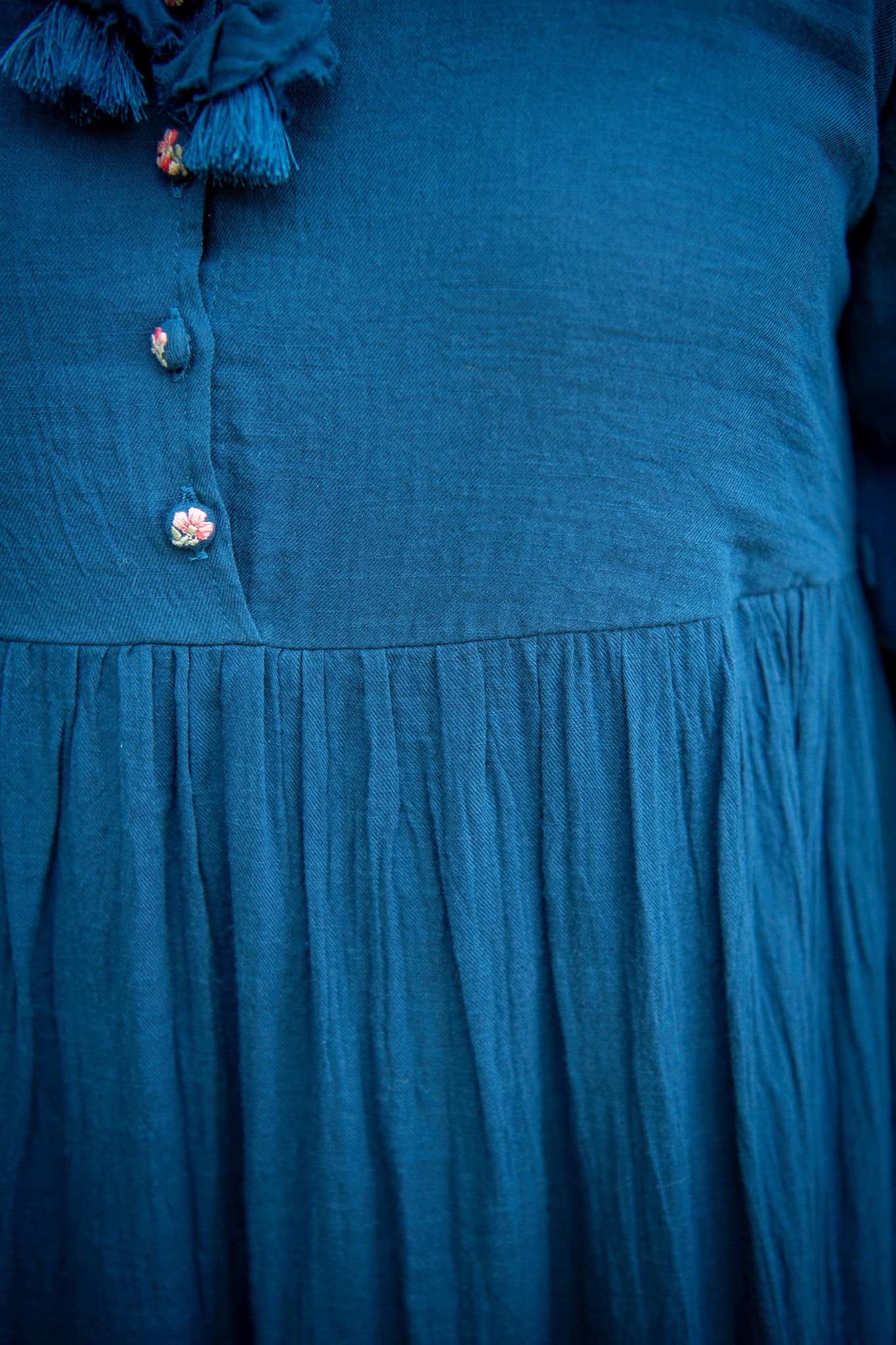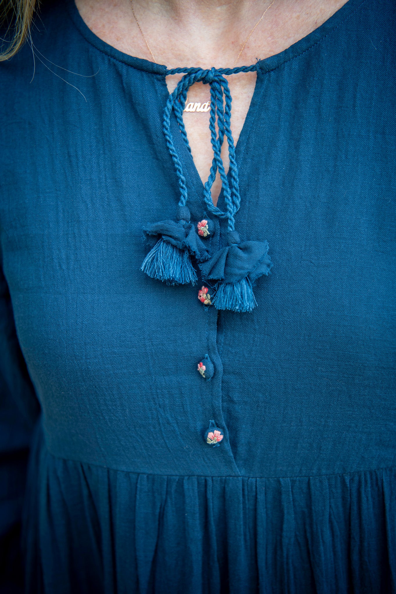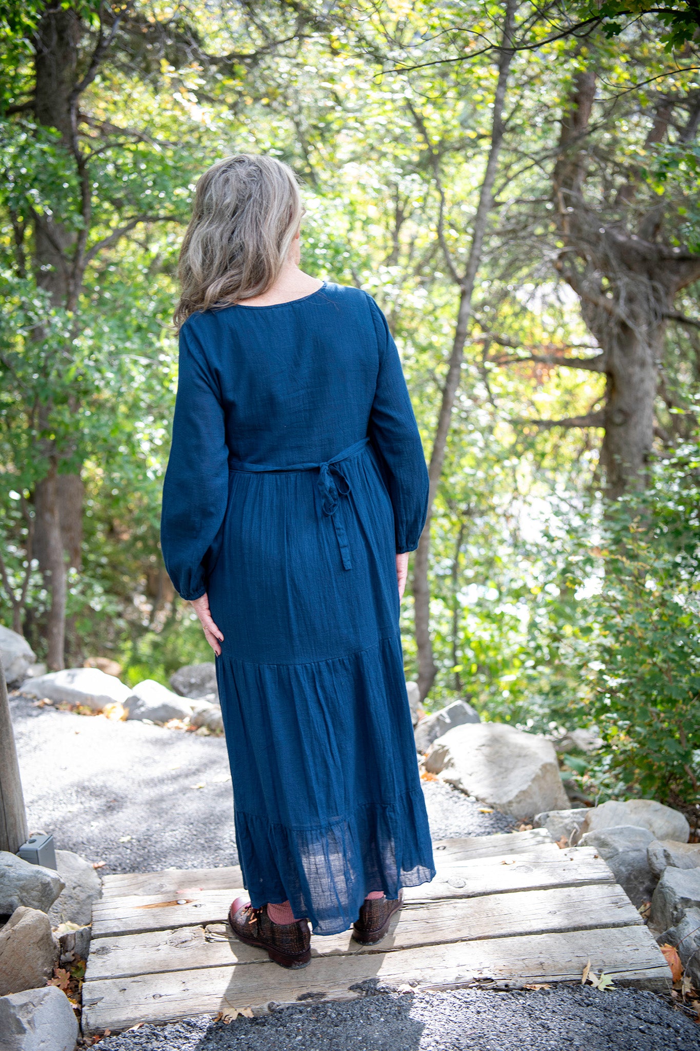 Step into effortless elegance with our Concerto Prairie Dress, a timeless piece that blends rustic charm with modern grace. This flowing, tiered dress is perfect for those cozy days spent outdoors or a night out with friends. The inky blue hue evokes a warm wintery vibe, while the soft, lightweight fabric ensures you stay comfortable, no matter where your day takes you.