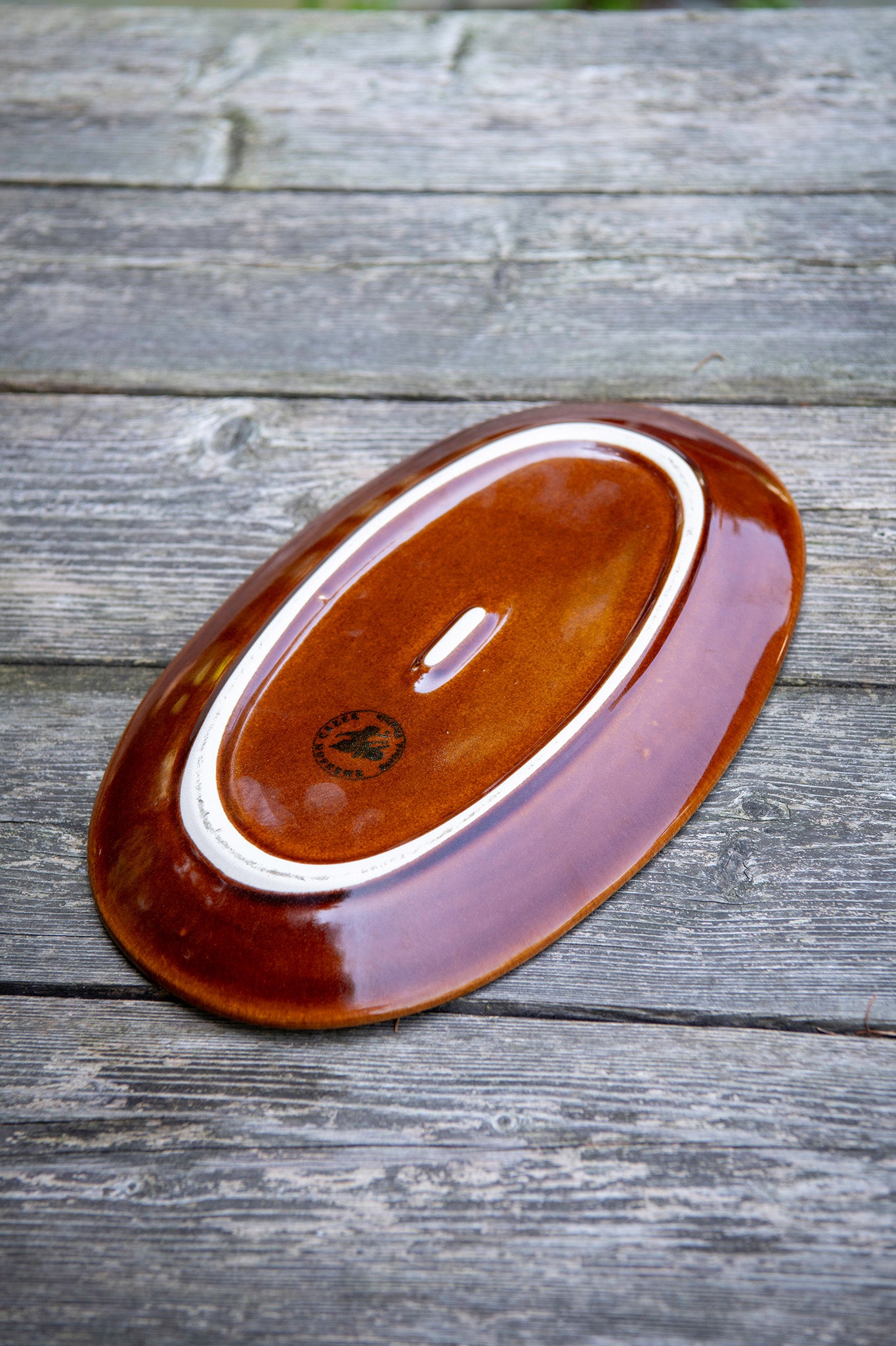 Bring artisanal Americana to your table settings with this handmade serving platter from Emerson Creek Pottery. Featuring a unique oval shape that is easy to make space for on a joyfully crowded table, this generously-sized stoneware serving plate presents beautifully in its rich and rustic copper glaze.