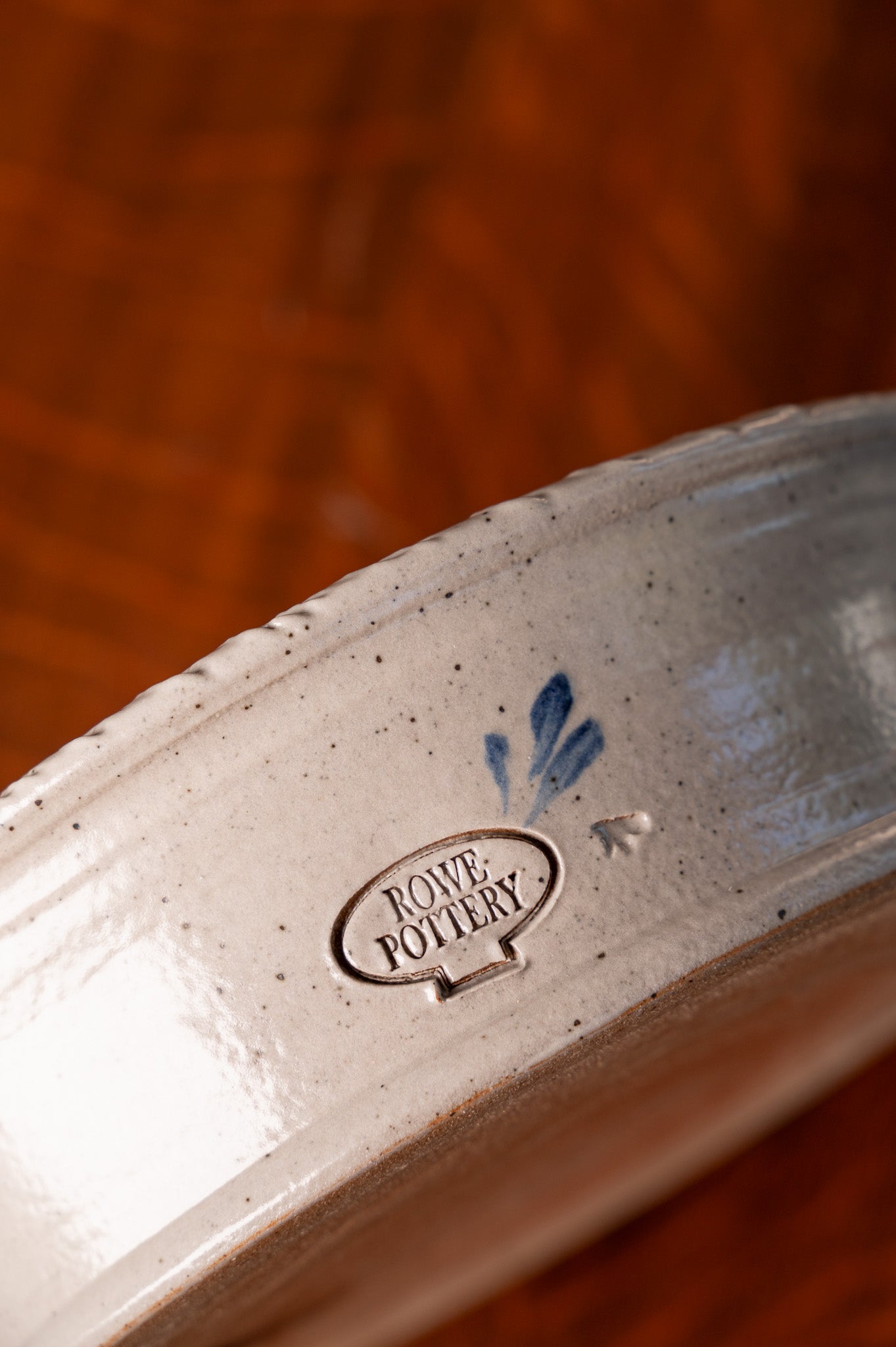 Our Prairie Floral Quiche Dish from Rowe Pottery is ideal for baking your favorite pies and quiches. The even heat distribution of stoneware and our non-stick interior glazing yields perfect baking with easy cleanup. Our hand-painted floral detailing in cobalt blue makes transferring your creation unnecessary, as it moves beautifully from oven-to-table.