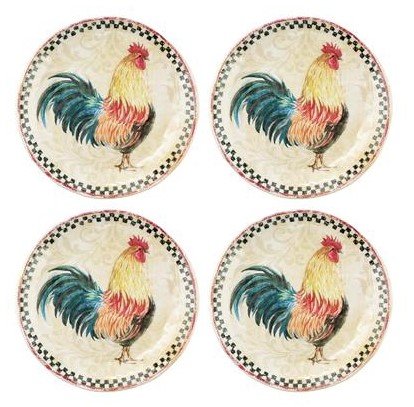 Country Rooster Melamine 6" Appetizer Plates, Set of 4