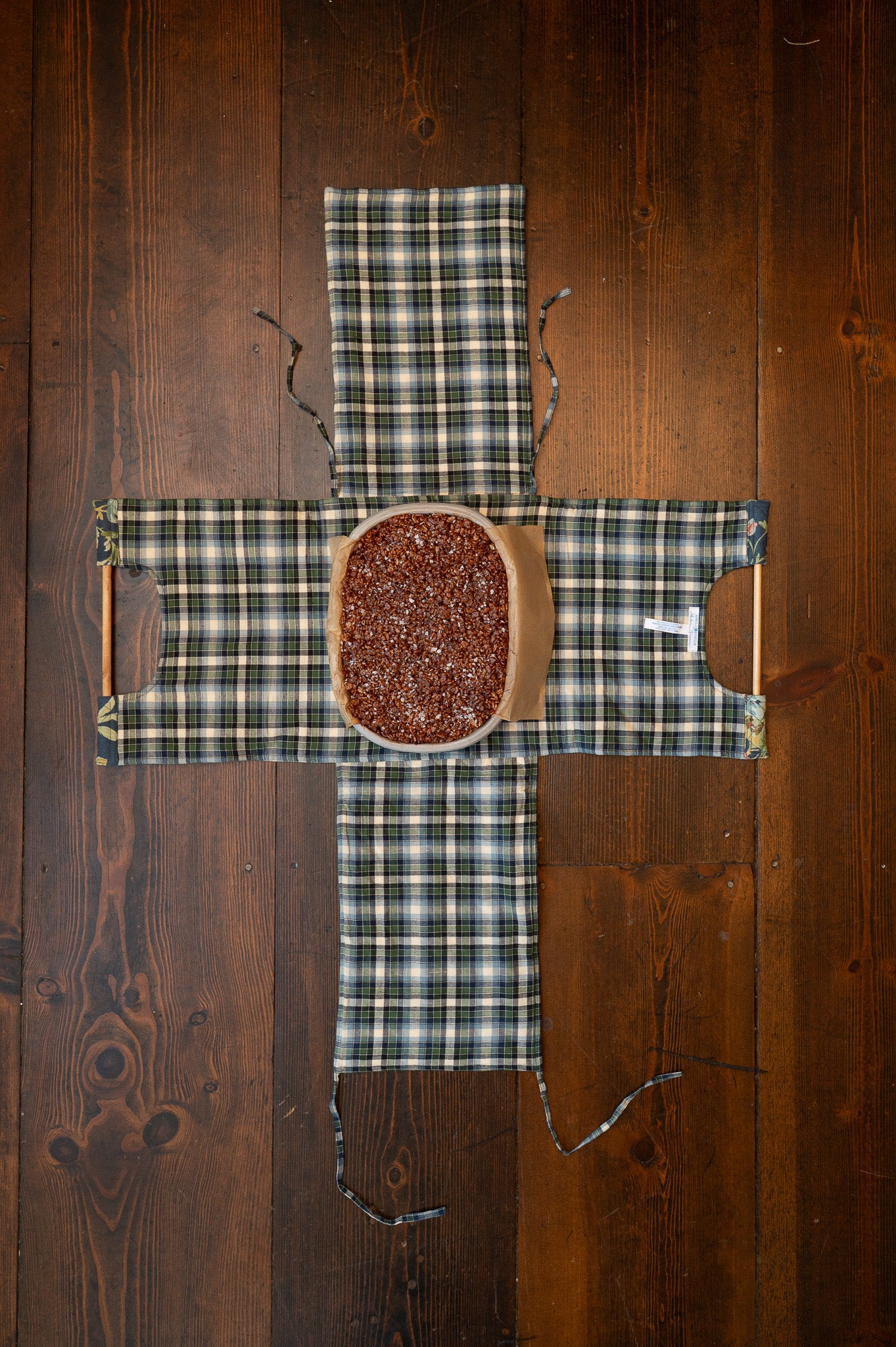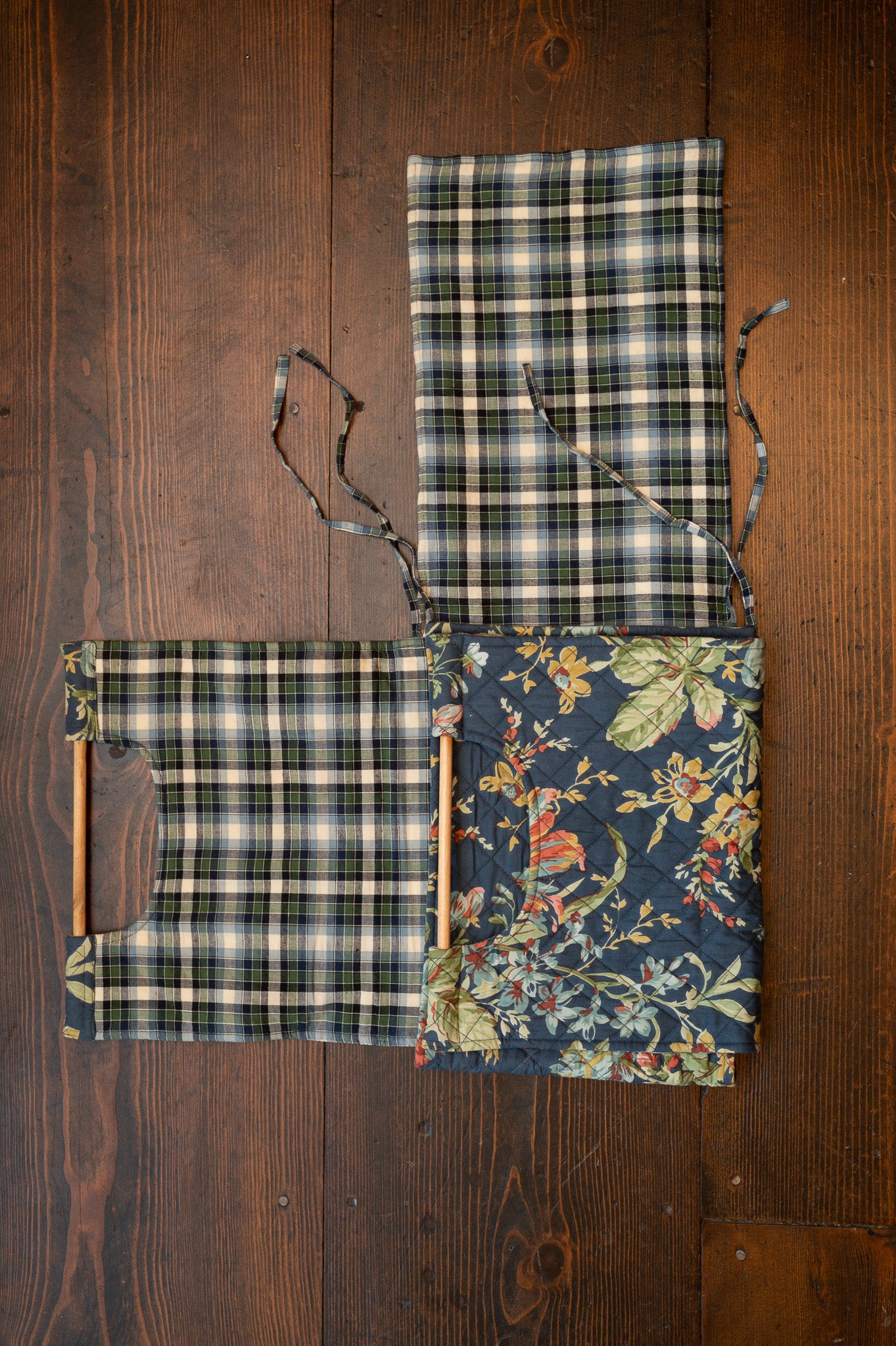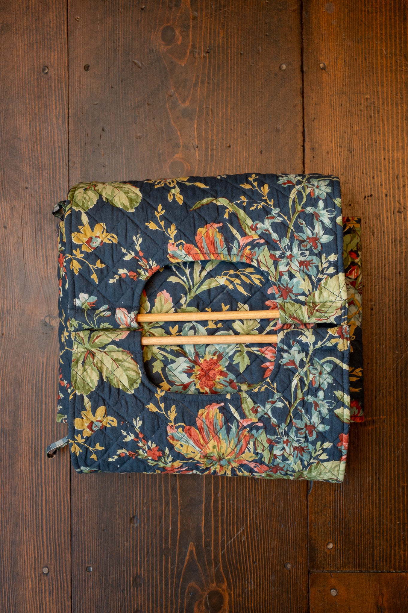 A marvelously clever and ultra-stylish way to transport a sizable dish, we bring you our NEW Eternal Rose Casserole Dish Carrier! Made from 100% hand-quilted cotton in a moody navy that's covered throughout in delicate, hand-painted florals with a charming plaid interior, this ingenious dish carrier boasts removable wooden handles to make bringing a hot dish to an event easy and elegant. The design is complete with 3 patch pockets for including a recipe card or a special note should you choose to leave this beautiful quilted carrier behind as a thoughtful hostess gift.