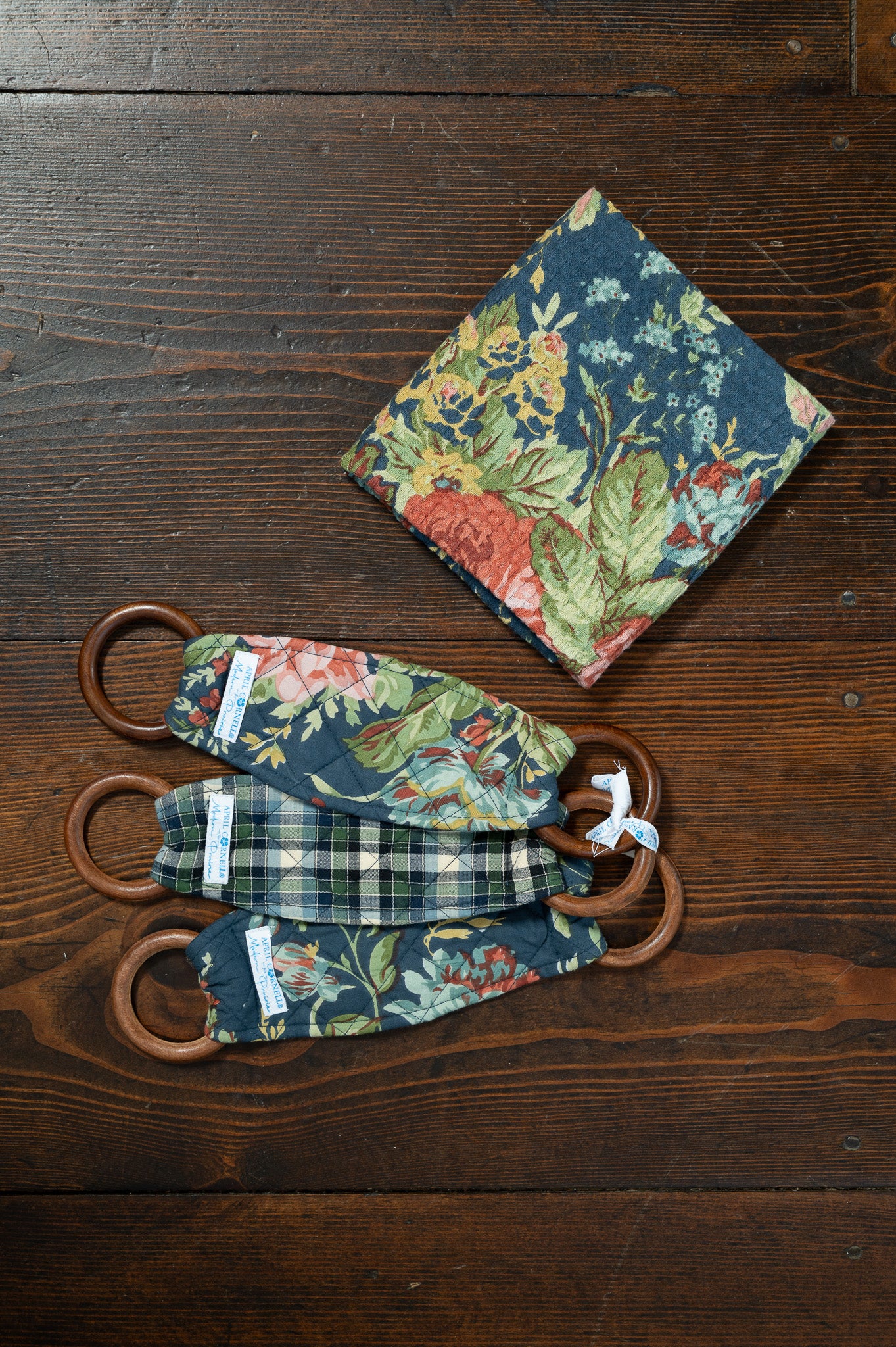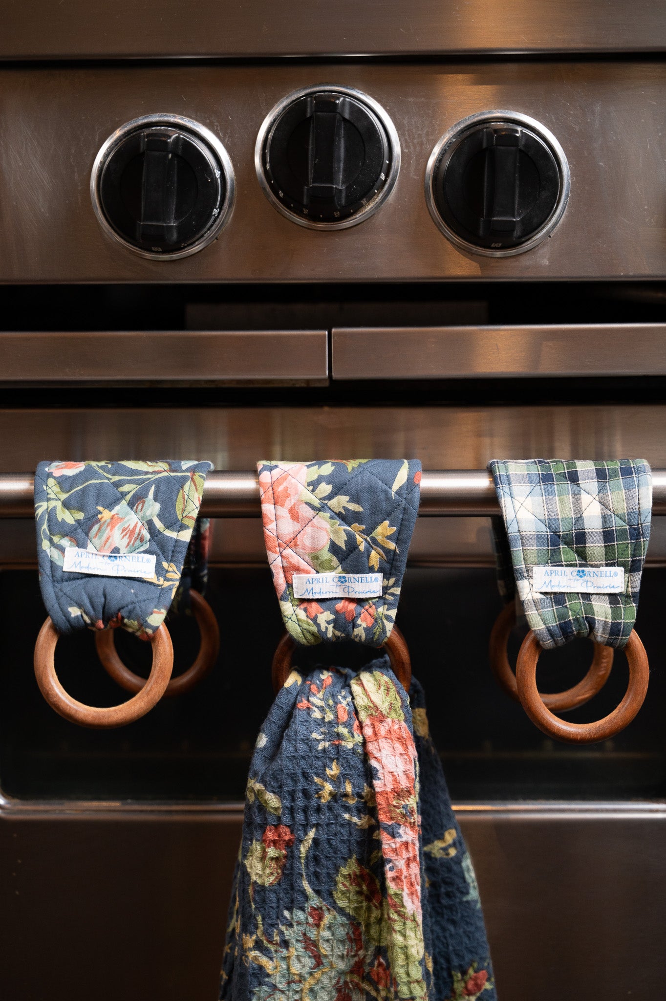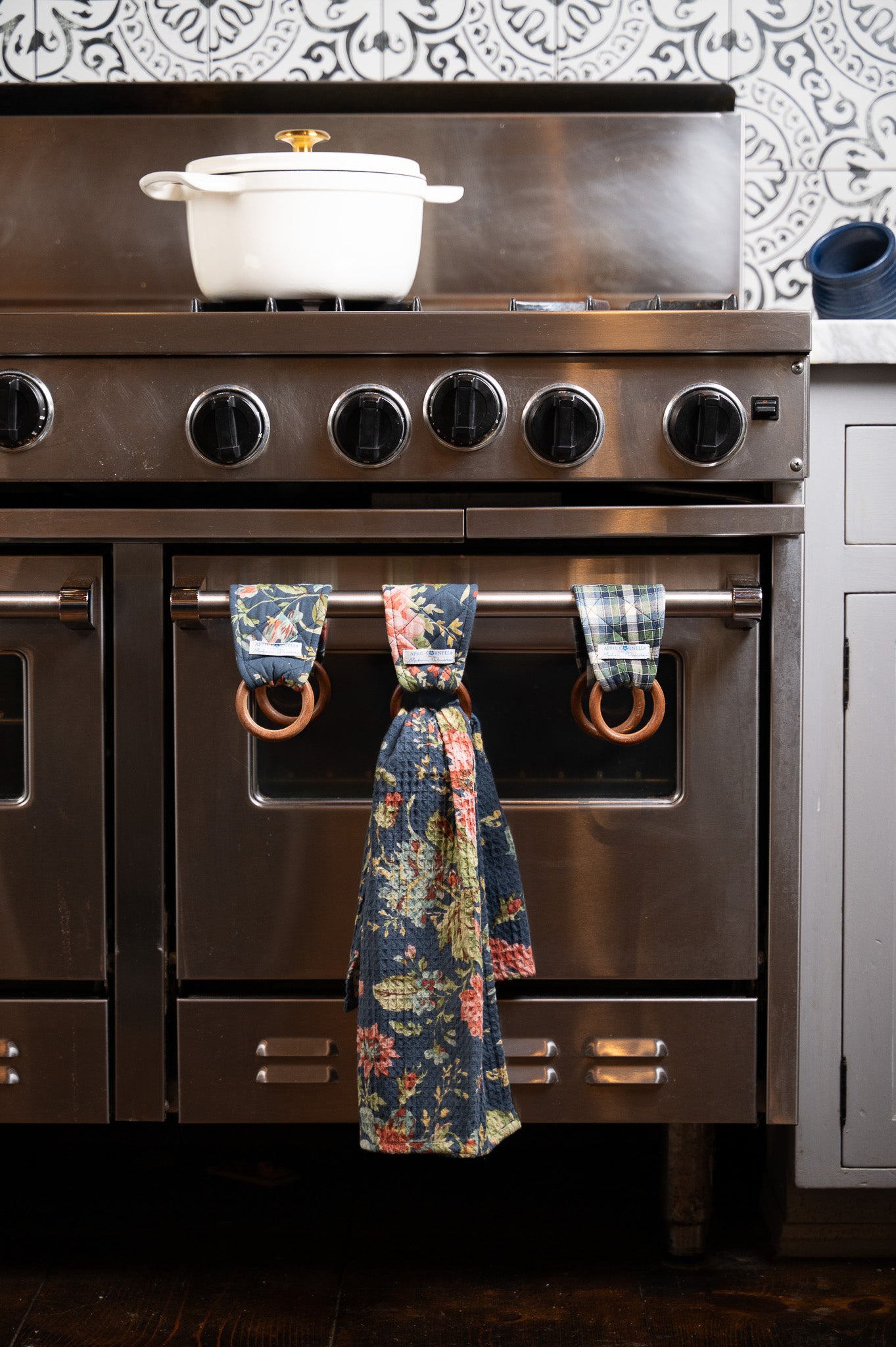 Each set includes three coordinating quilted cotton tea towel hangers with wooden rings on either side, allowing you to neatly hang your towel on an oven handle, hook, or drawer pull. The mix-and-match prints add a lovely farmhouse touch, blending effortlessly into any kitchen décor.