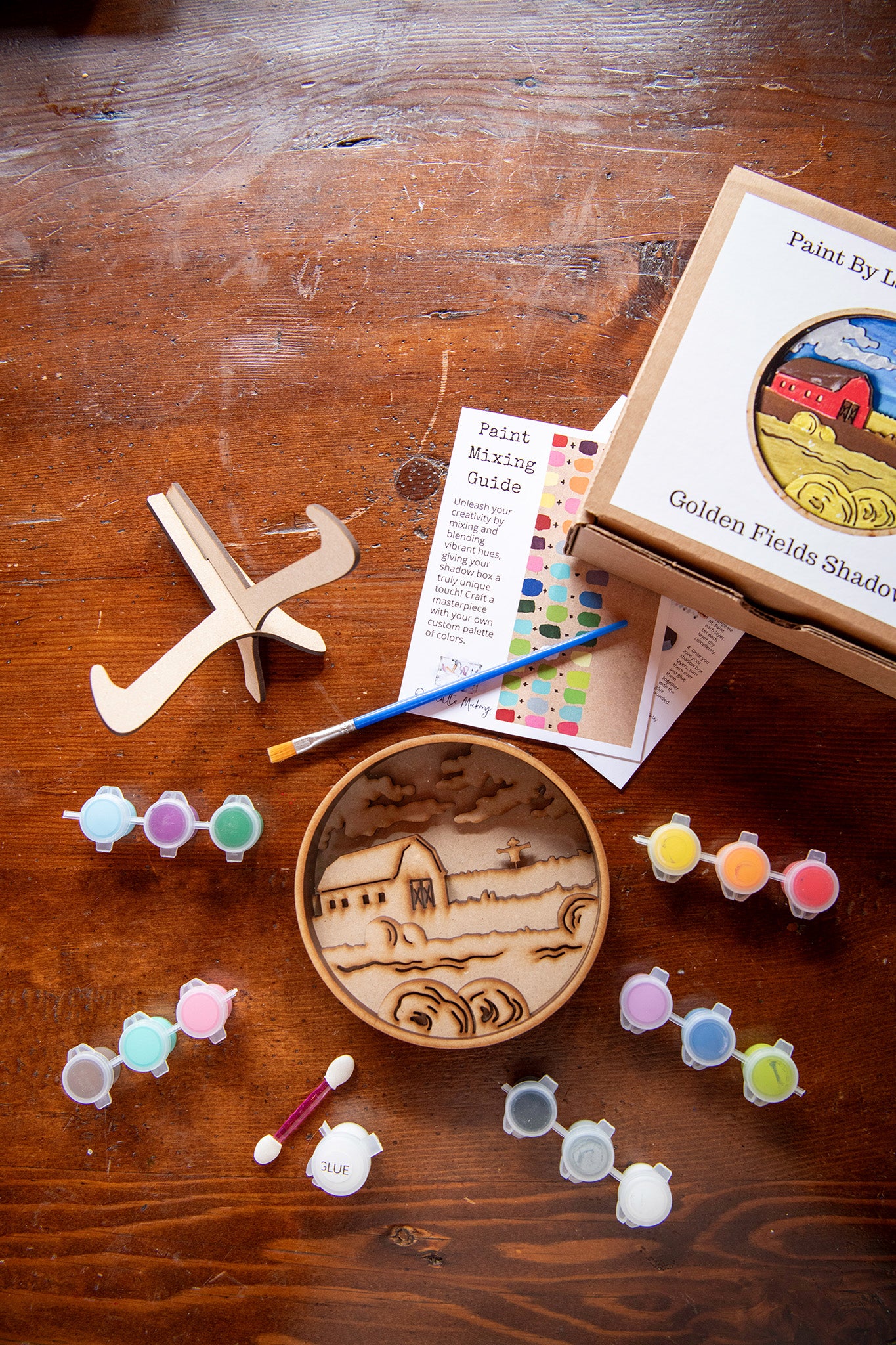 Our Shadow Box Kits are fun and easy to make! Simply paint each layer a different color and then glue them together! Best suited for ages 6-96 years old, these unique crafting projects are fun for the whole family! The time required to complete your masterpiece is 30 minutes to an hour, making this kit great for group craft nights! No experience needed, just let your creativity out to play! The completed shadow box is approximately 5" in diameter, and it has 8 layers. The kit includes a stand as an option for display once you have completed your masterpiece. No matter your crafting level, you are certain to achieve stunning results with this kit!