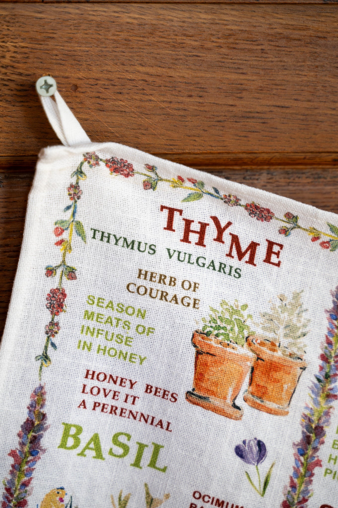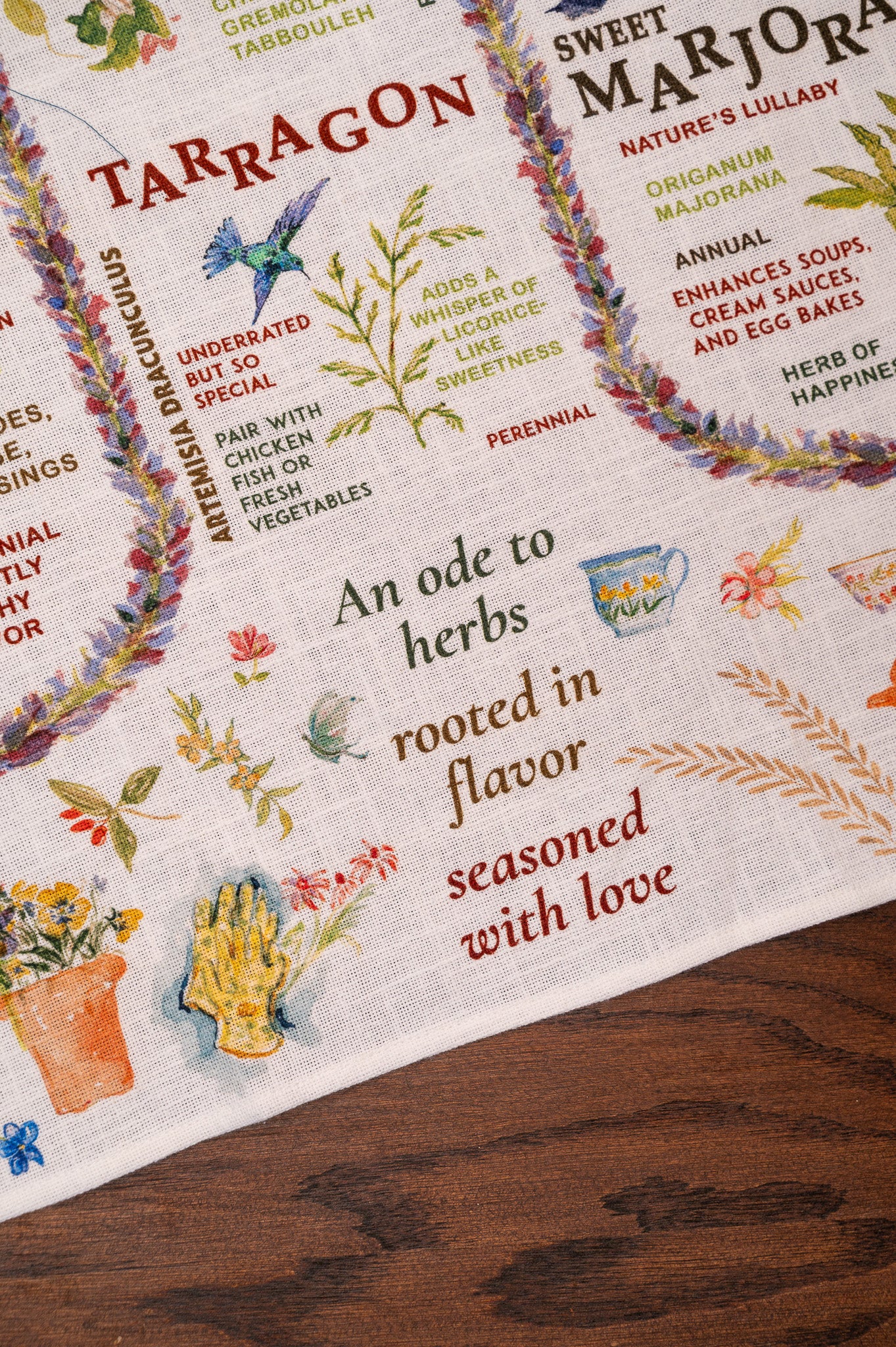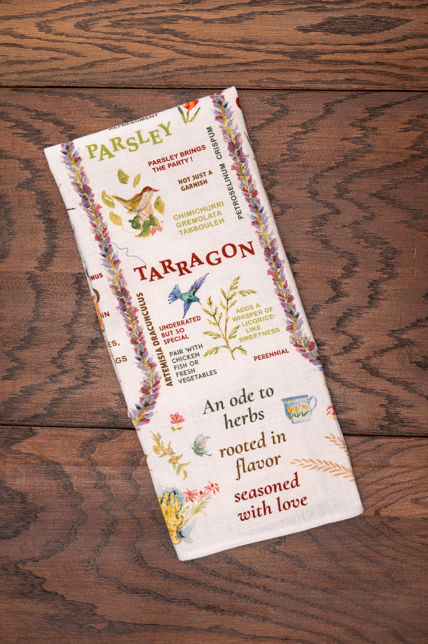 An artful ode to the herbs that make every dish sing. Hand-painted by April Cornell, this 100% cotton tea towel features a beautifully detailed guide to the garden’s most beloved flavors — from rosemary and thyme to basil and sage. Equal parts educational and enchanting, it brings warmth, whimsy, and a dash of botanical charm to your kitchen.