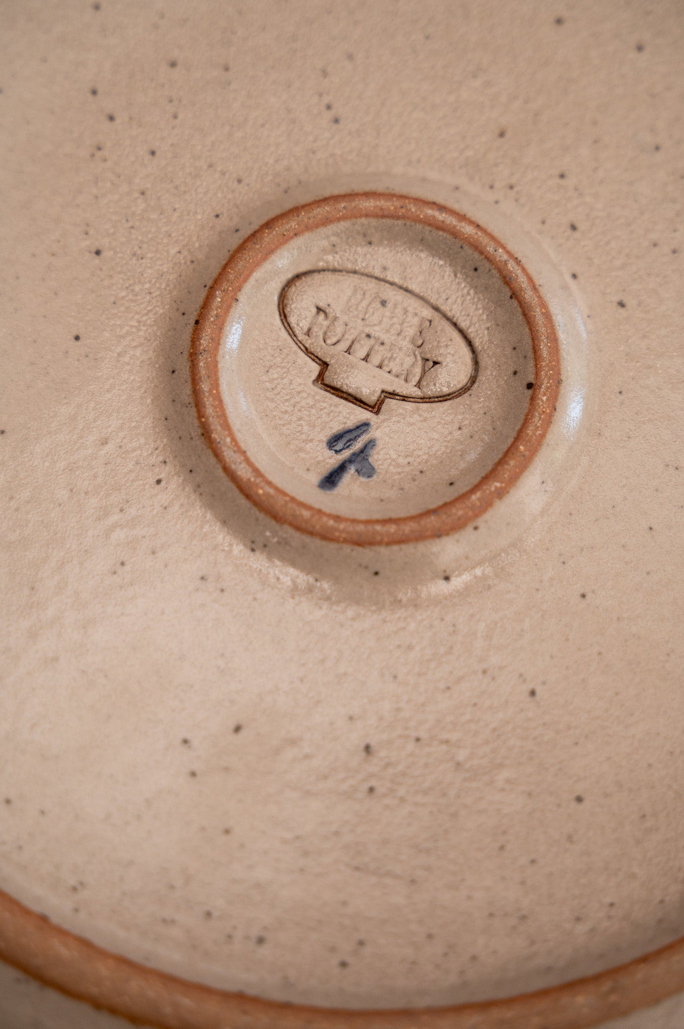 Enhance your table with this elegant handmade ceramic pie plate, or leave it behind as a thoughtful hostess gift. You'll find an artist's mark near the Rowe Pottery logo on each of the pieces that we offer at Modern Prairie. It adds an element of personalization that we think is so special.