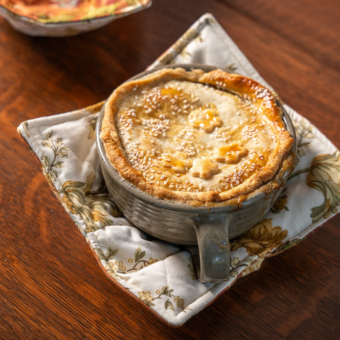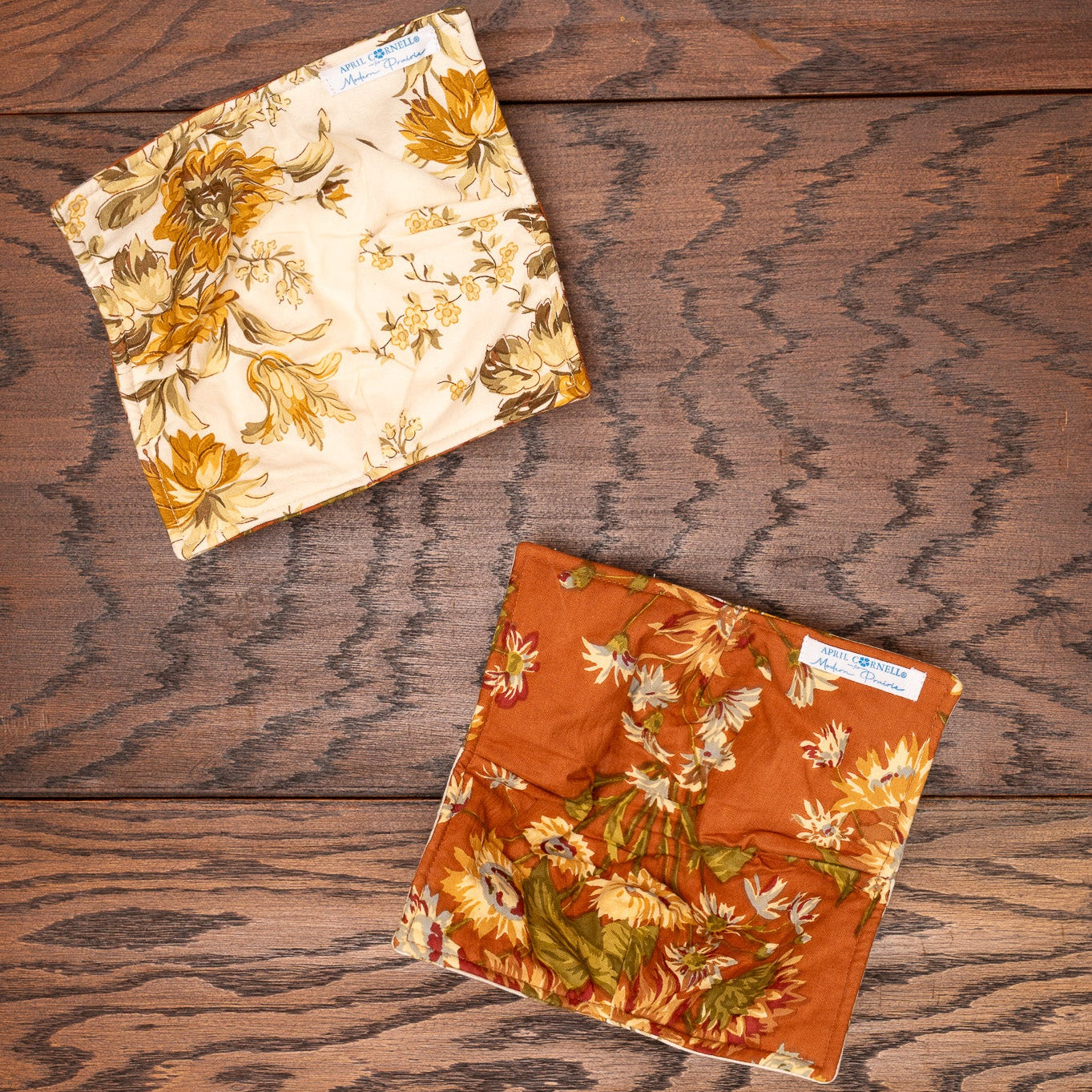 New and exclusive to Modern Prairie, not only are these gorgeous bowl cozies wonderfully clever for handling a hot dish, they also add so much unique style and elegance to a table setting! Made from 100% cotton, this hand-quilted set of 2 bowl cozies present in our adorably asymmetrical Marguerite and Musical Floral print, and fit a variety of single-serving bowls.