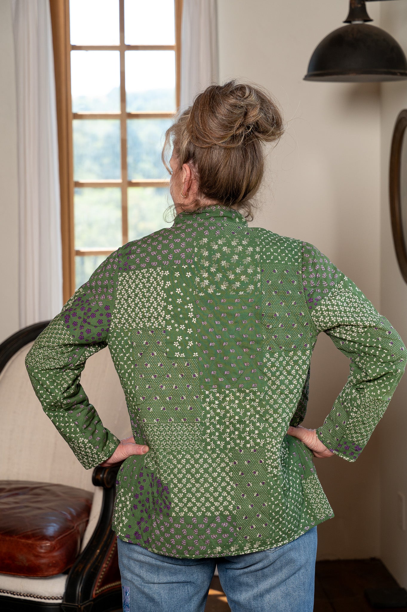 The Mel’s Pretty Patchwork Jacket is that rare blend of cozy and charming that only gets better with wear. Crafted from 100% cotton with a quilted diamond design, it’s fully reversible—giving you two looks in one effortless layer. The printed patchwork and Nehru collar lend a touch of global-inspired flair, while front patch pockets keep it practical for everyday wear. Whether you’re heading out for a fall stroll or curling up with tea, this jacket wraps you in warmth and easy elegance.