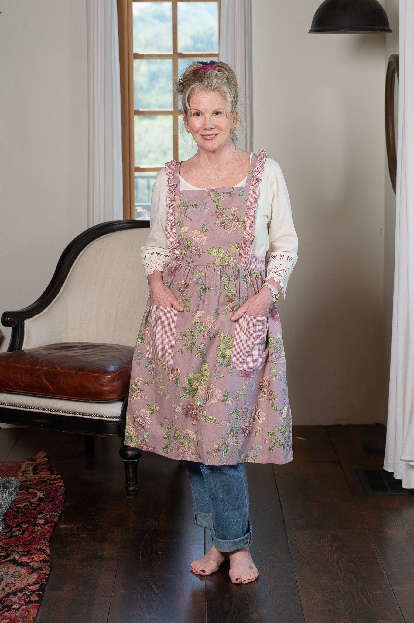 The Milene Apron is as pretty as it is practical, bringing a touch of charm to your everyday kitchen moments. Made from 100% cotton, it features a soft floral print with cross-back straps trimmed in ruffles and lace for just the right hint of sweetness. Two front patch pockets keep essentials close at hand, while the adjustable fit makes it as comfortable as it is flattering.