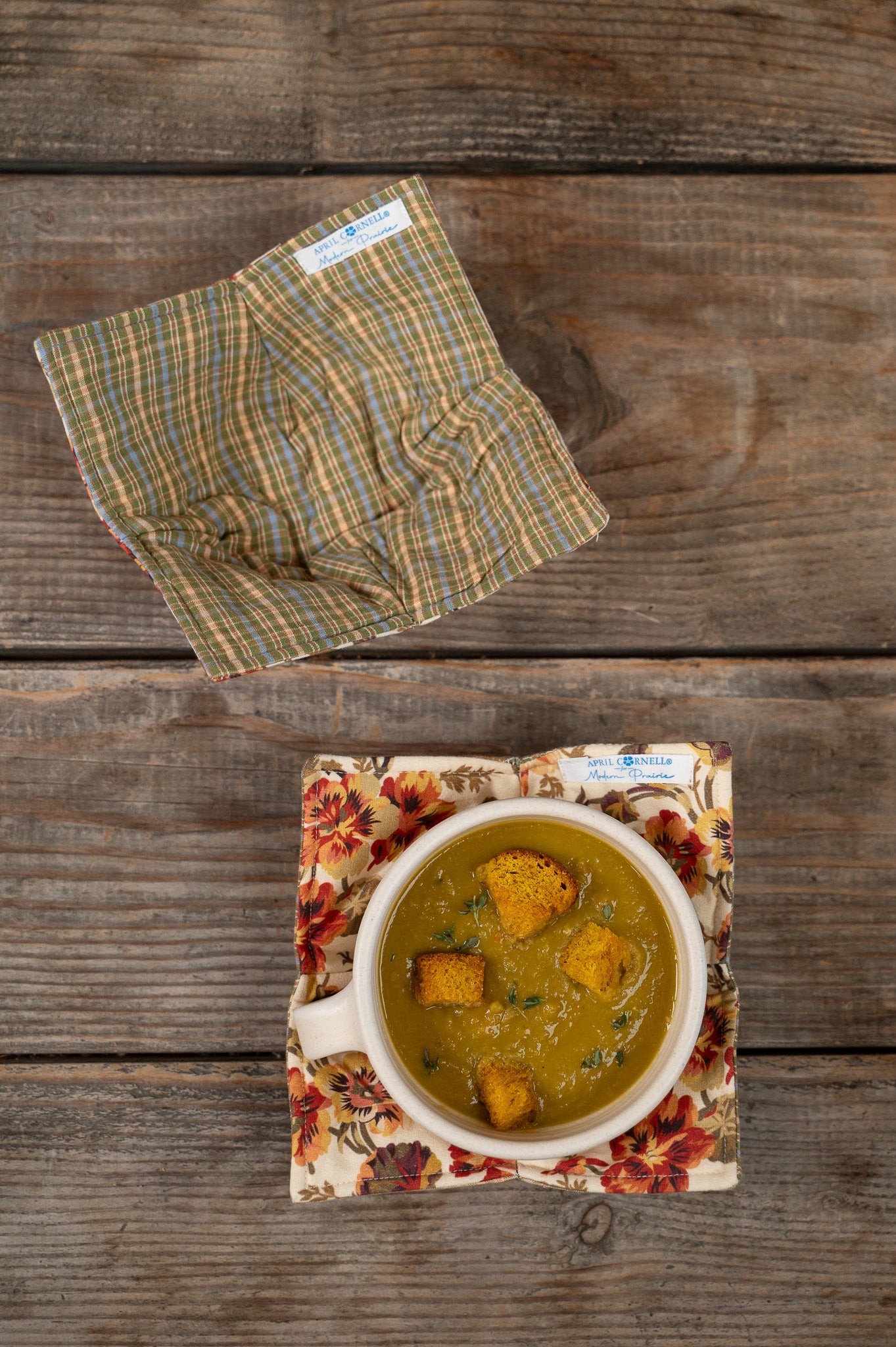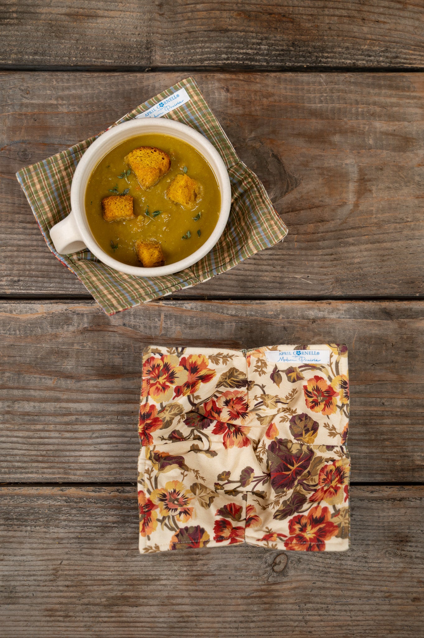 Say goodbye to juggling hot bowls or chilly ones fresh from the fridge. These quilted cozys cradle your bowls with comfort and charm, making soup season or late-night leftovers a little cozier. Coordinating between our signature Nasturtium Wheat print and a coordinating gingham, they’re as delightful on the table as they are practical in your hands.