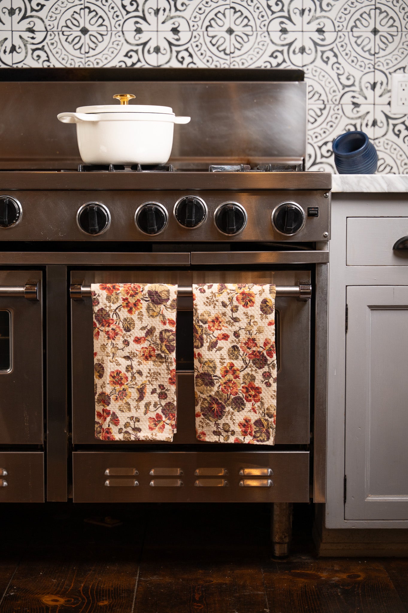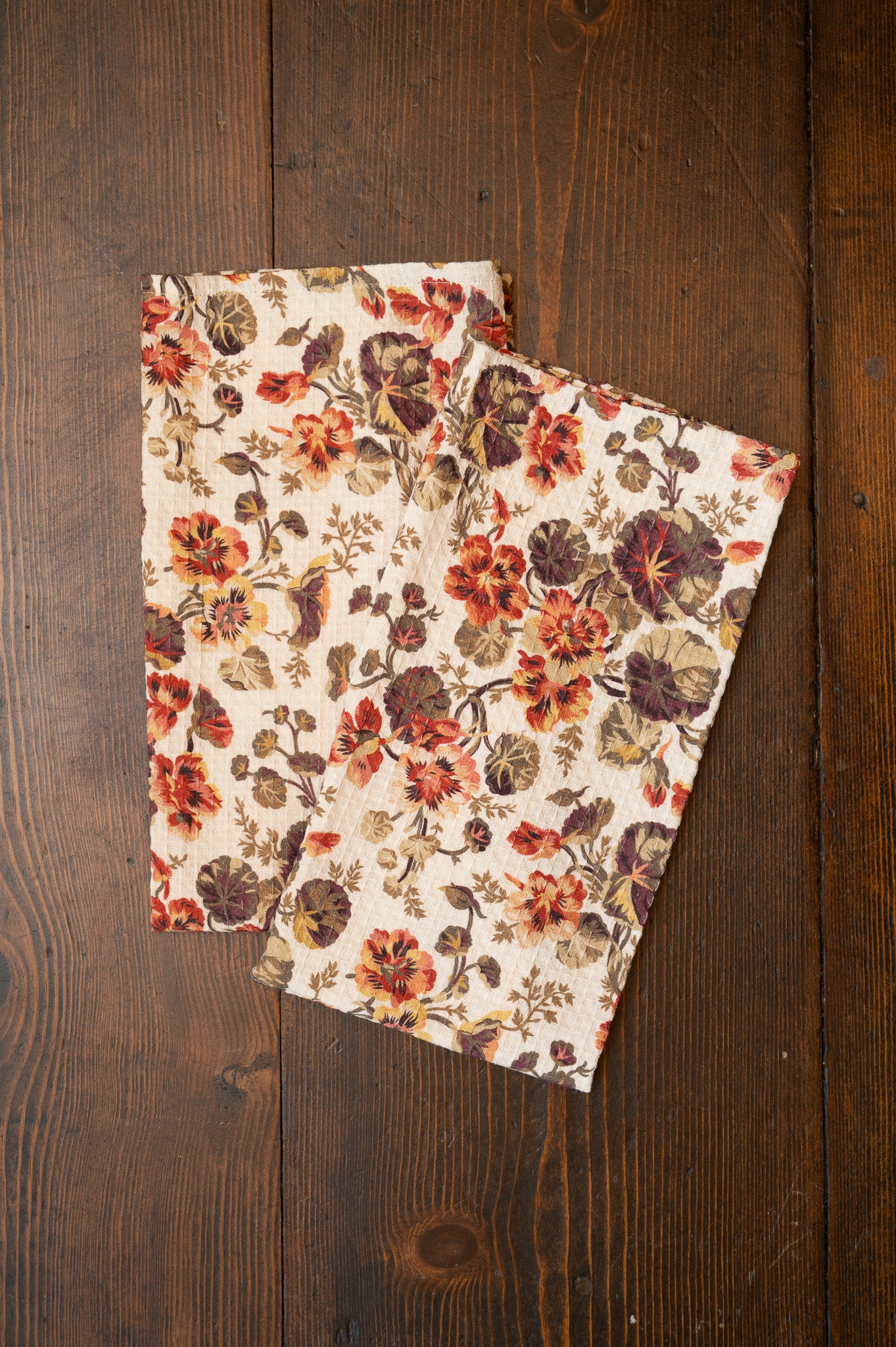 Adorn your kitchen in the homespun charms of autumn with our Nasturtium Wheat Tea Towels. Woven in soft, absorbent cotton with a gorgeous, hand-painted floral print, they’re as practical as they are pretty. Perfect for drying dishes, lining a bread basket, or just adding a splash of vintage beauty to your kitchen rail.
