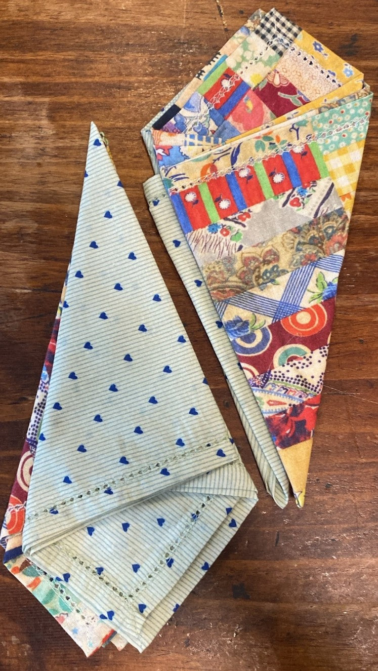Set the table with color and charm. This set of four cotton napkins mixes our signature patchwork print with a sweet blue heart reverse, giving you two looks in one. Perfect for everyday suppers or weekend gatherings with friends.