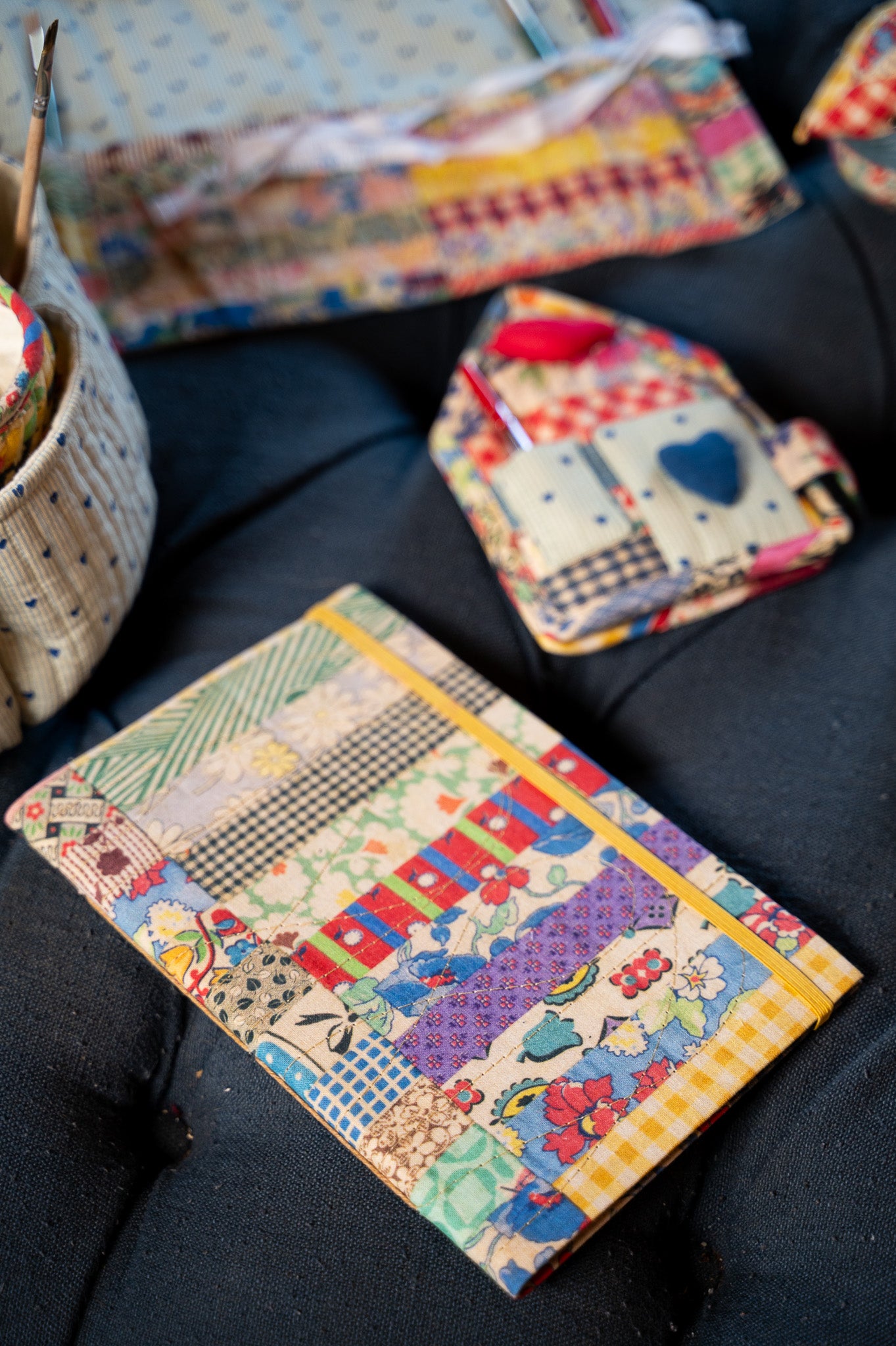 Our beautiful 30-page journals are the perfect accessory for anyone who loves to keep a diary, write to-do lists, and more. Uniquely crafted with hand-stitched patchwork detailing and covered in cotton fabric upcycled from the April Cornell factory, this sustainable journal is wrapped in our vintage-inspired Patch Parade cottons, it’s secured with a sunny yellow elastic to keep your thoughts (and pages) together.