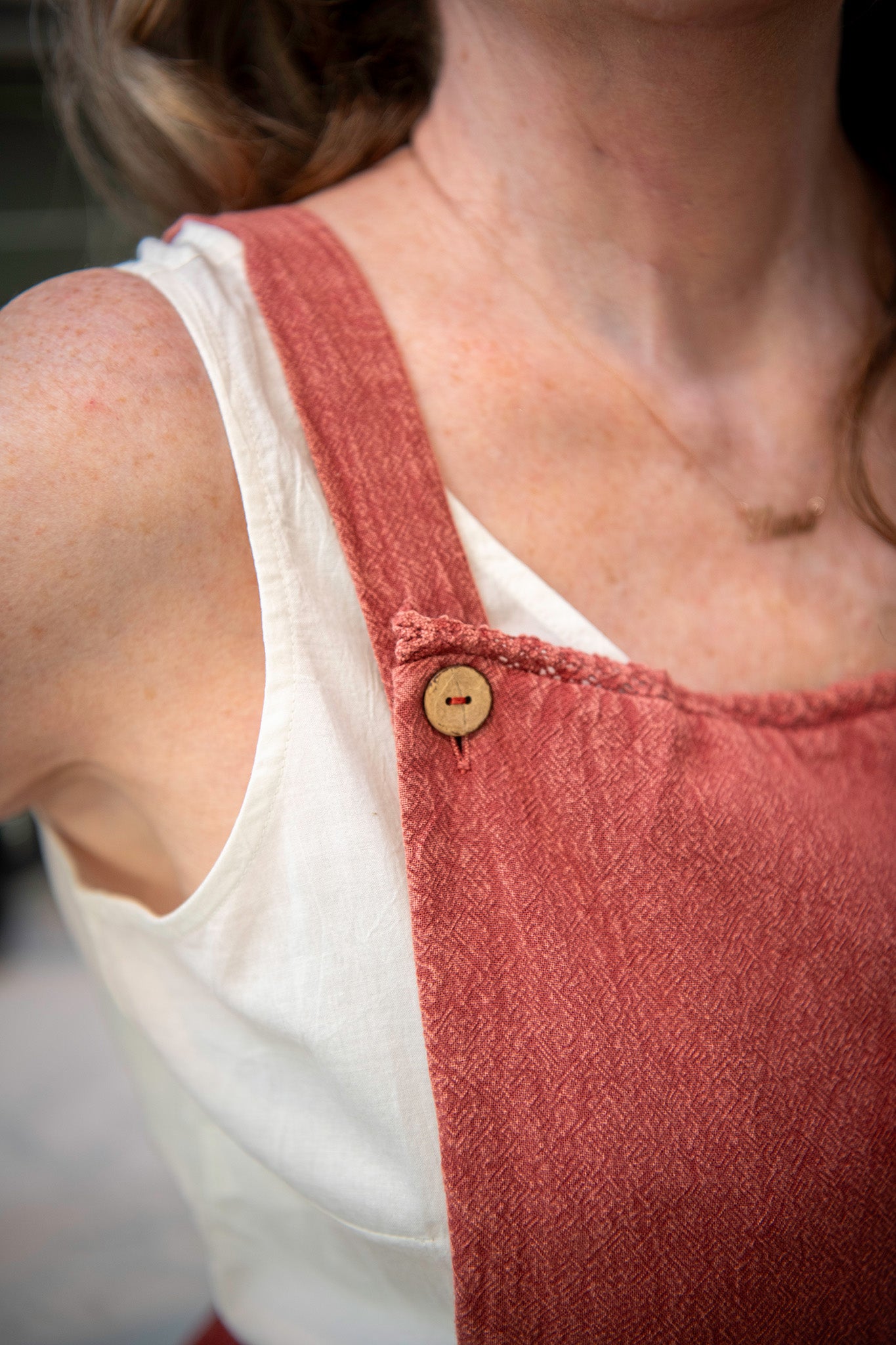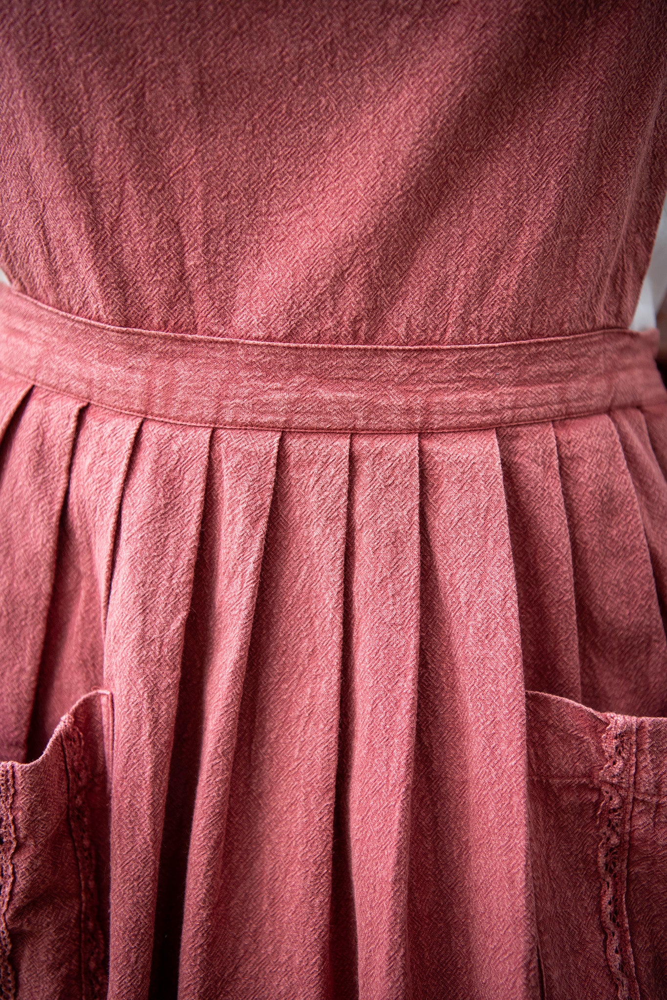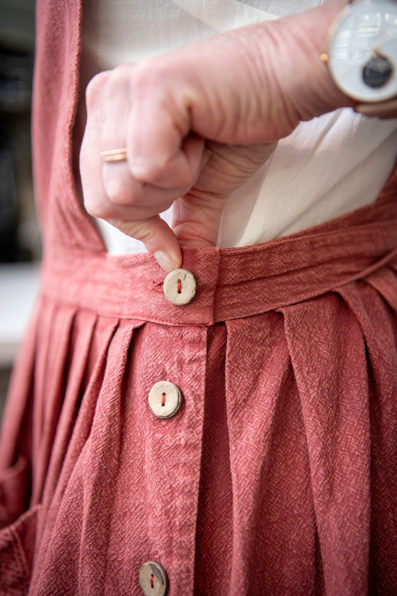 In a NEW silhouette, we bring you the elegantly understated and ultra-useful Pretty As A Dress Pinafore Apron! Made from 100% cotton in a sun-washed hue of red, this durable and adorable apron boasts a pinafore bibbed front with multi-button adjustability at the straps and down the side waist, so you can customize it for the perfect fit! The gathered waistline and full coverage skirt adds an elegant dress-like enhancement that looks just beautiful layered over your favorite Modern Prairie tops! Complete with front patch pockets with embroidered lace adornment, this stylish apron works well and looks swell!