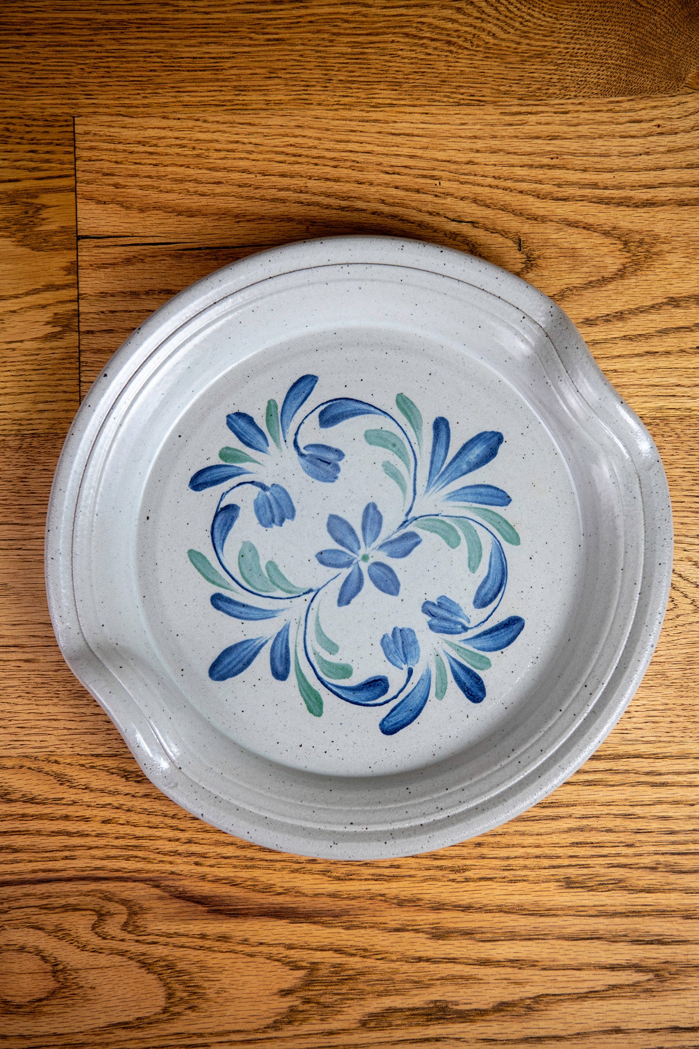 In our exclusive Prairie Floral glaze, this wonderfully unique serving platter is accented throughout with handmade ridges that are inspired by the glacial striations of Wisconsin. Cleverly engineered by hand to have elegantly ergonomic handles, this generously-sized serving platter is a centerpiece in it's own right! You'll find an artist's mark near the Rowe Pottery logo on each of the pieces that we offer at Modern Prairie. It adds an element of personalization that we think is so special.