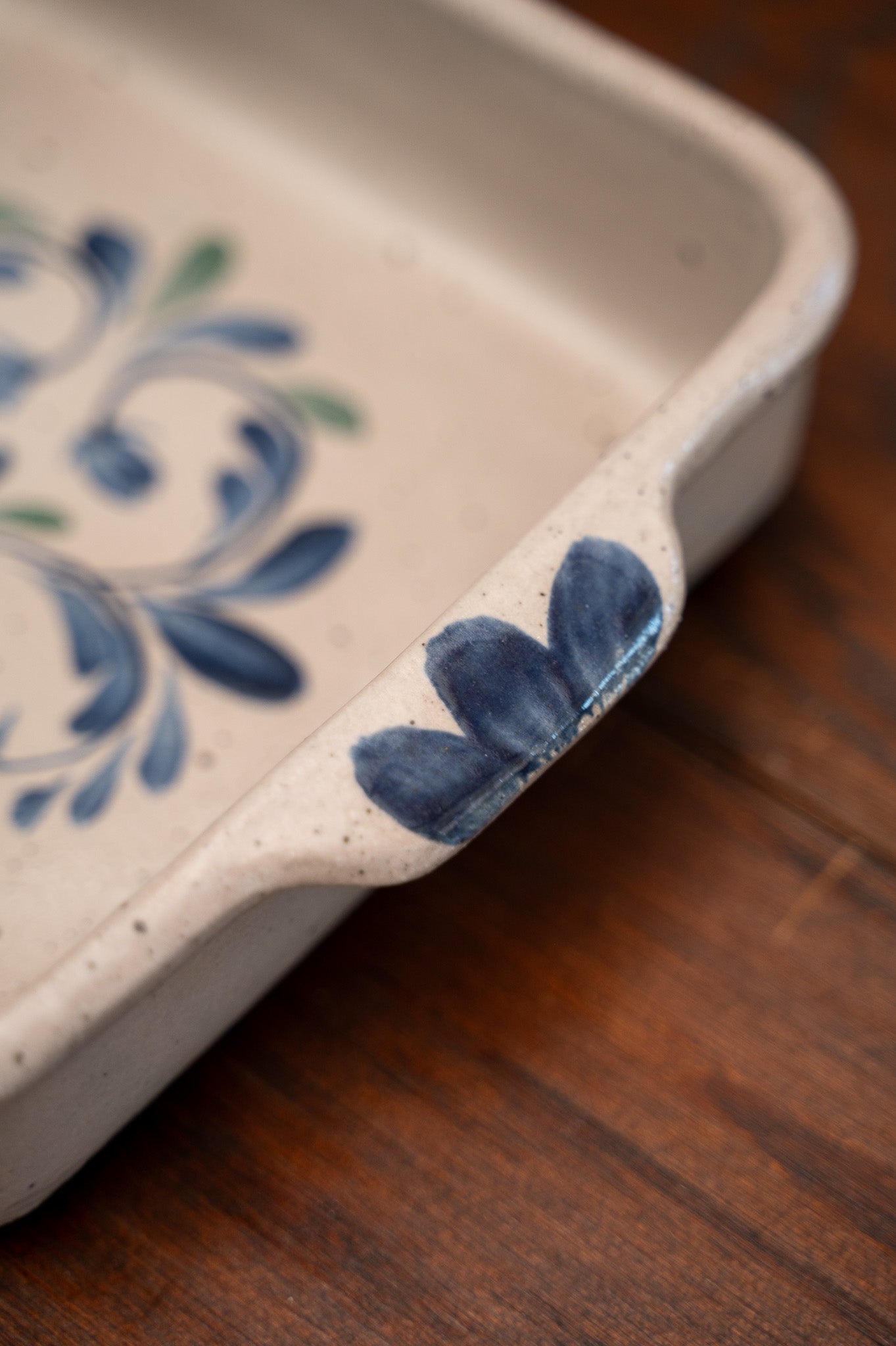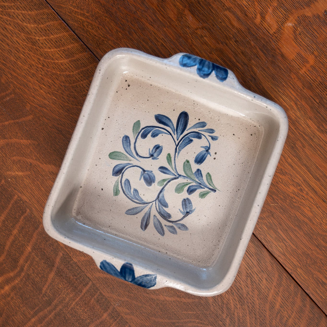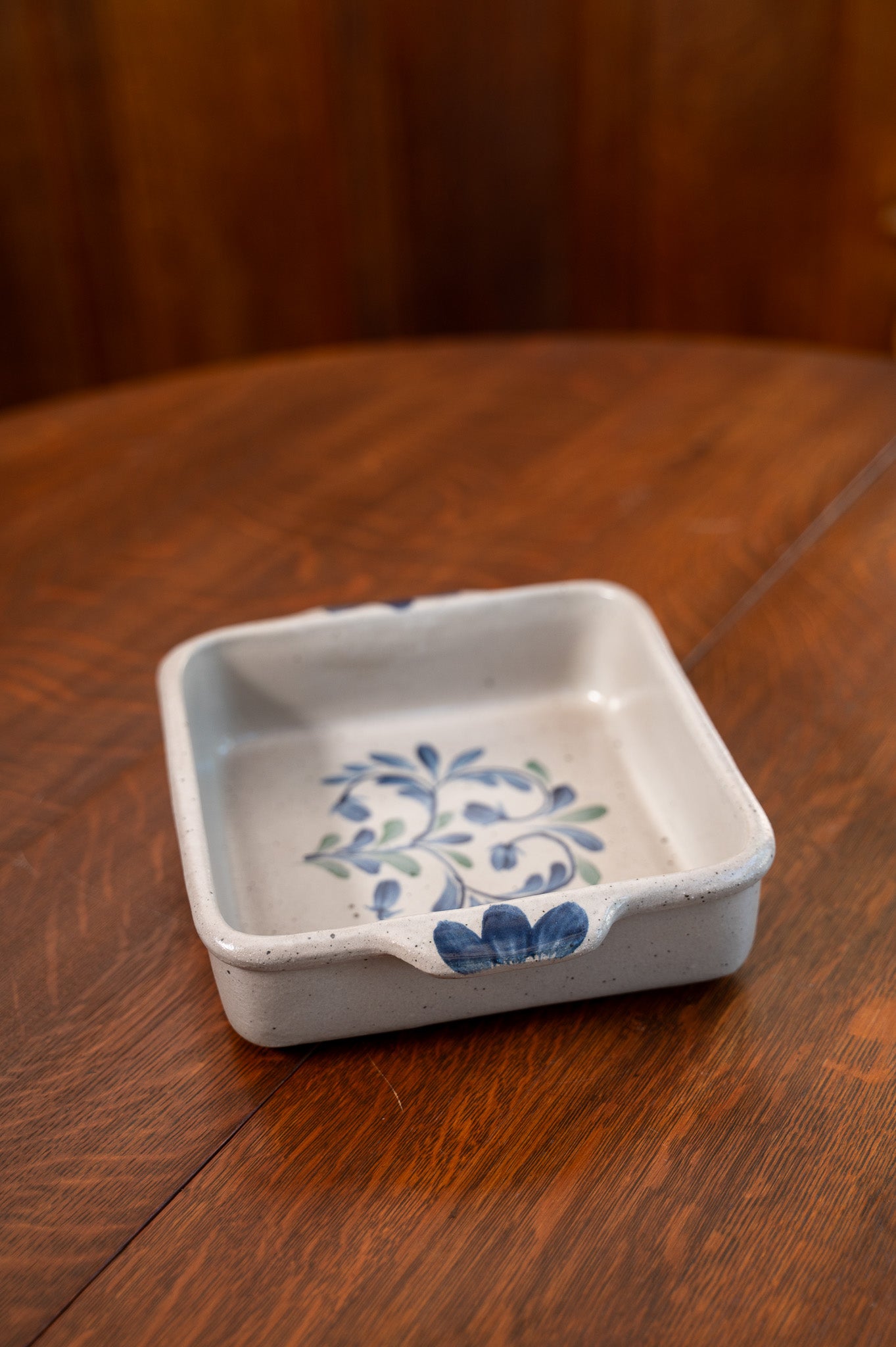 Enjoy an even bake for all your casseroles, bread doughs, dessert crumbles, and more in this gorgeous, hand-thrown stoneware vessel that presents beautifully from oven-to-table! Made by hand right down to the delicate cobalt blue floral detailing and fired in a creamy gray-hued glaze, this 8X8 casserole dish is non-stick, durable and made in the USA with heritage-worthy craftsmanship!