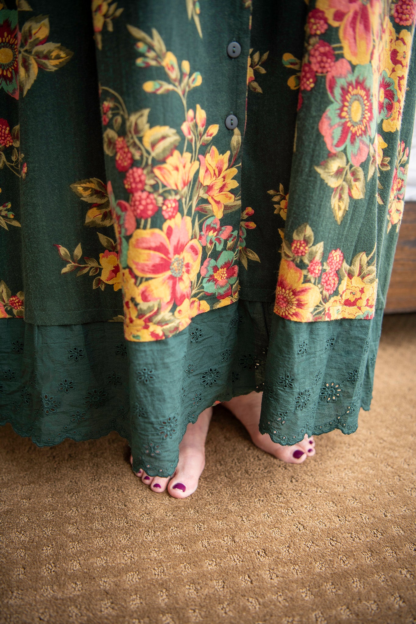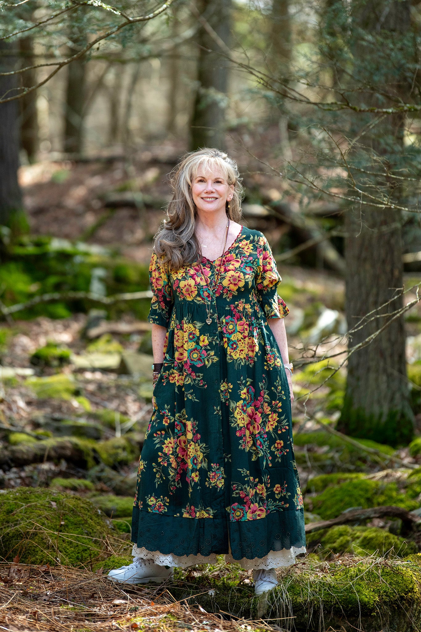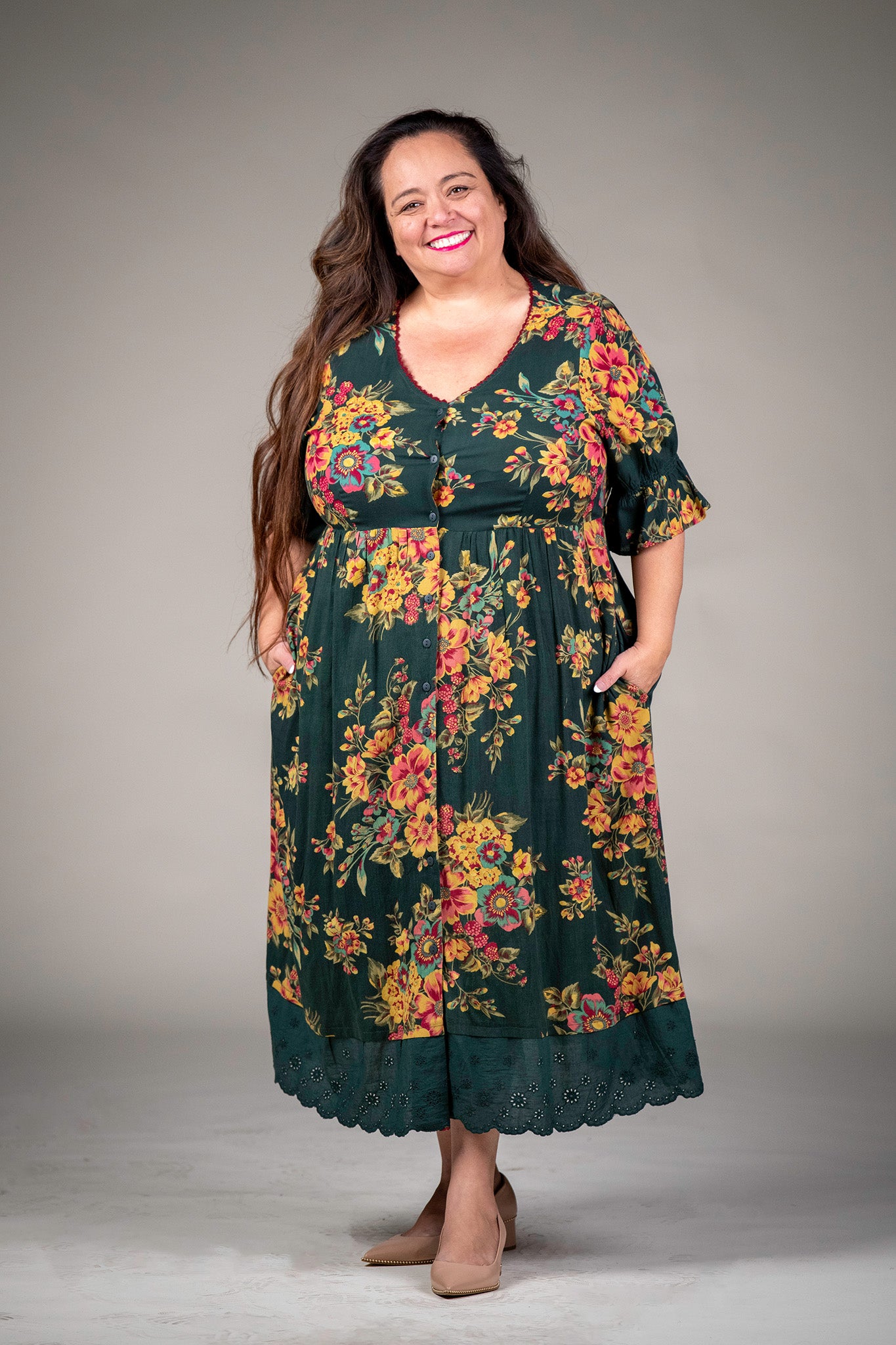 Say hello to effortless style with the Sikkim Dress! Made from soft, brushed rayon, this flowy dress features beautiful crochet trim along the neckline, tonal chalk buttons down the front, and a tie-back waist for a flattering fit. The elbow-length sleeves have a playful flounce, and the wide eyelet trim at the hem adds a charming touch. And of course, it has pockets! Perfect for a day out or a cozy evening in, the Sikkim Dress is as comfy as it is lovely.
