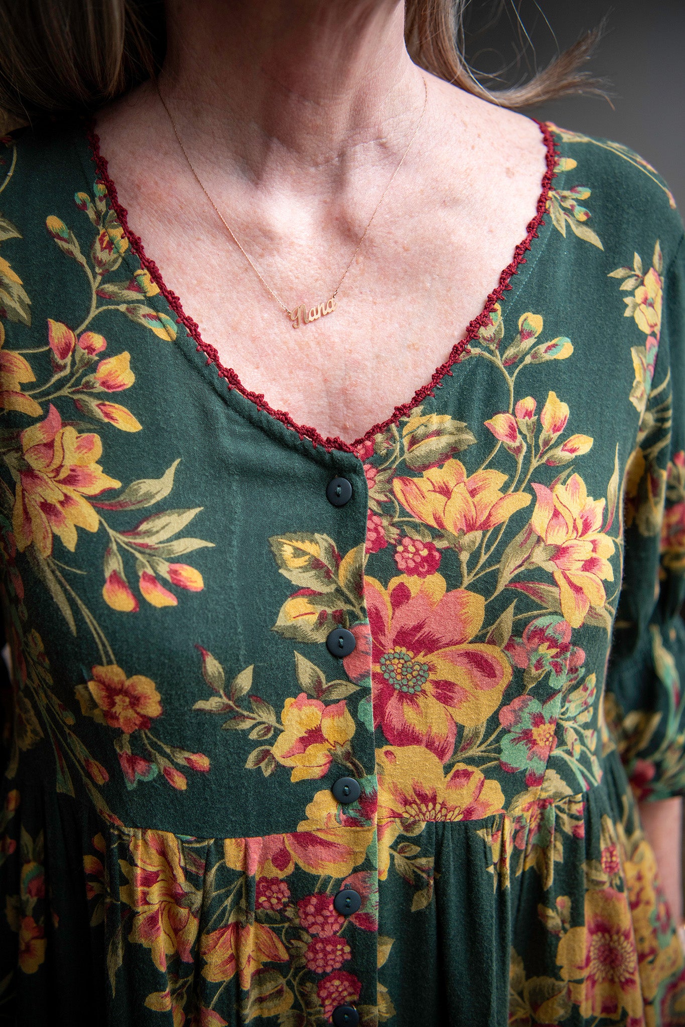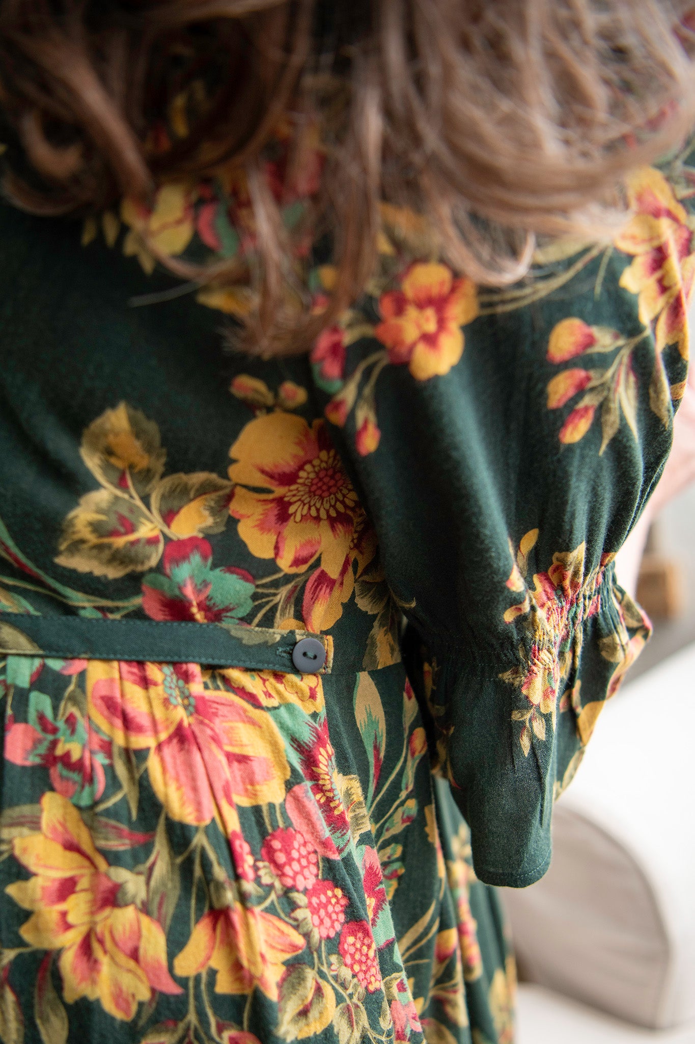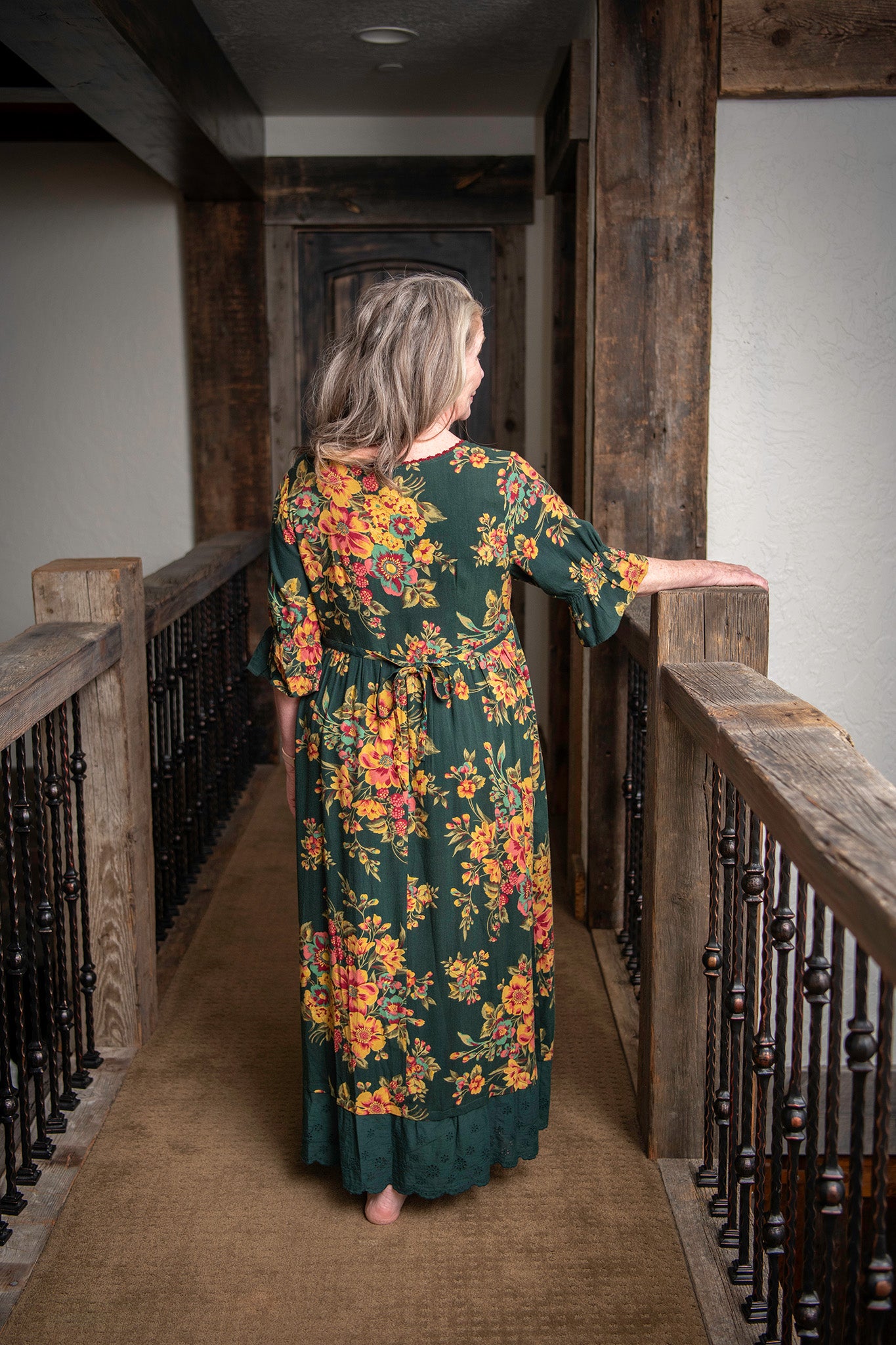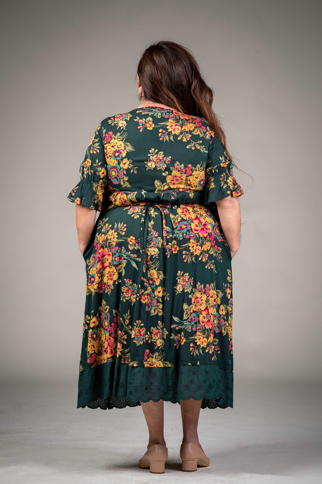 Say hello to effortless style with the Sikkim Dress! Made from soft, brushed rayon, this flowy dress features beautiful crochet trim along the neckline, tonal chalk buttons down the front, and a tie-back waist for a flattering fit. The elbow-length sleeves have a playful flounce, and the wide eyelet trim at the hem adds a charming touch. And of course, it has pockets! Perfect for a day out or a cozy evening in, the Sikkim Dress is as comfy as it is lovely.
