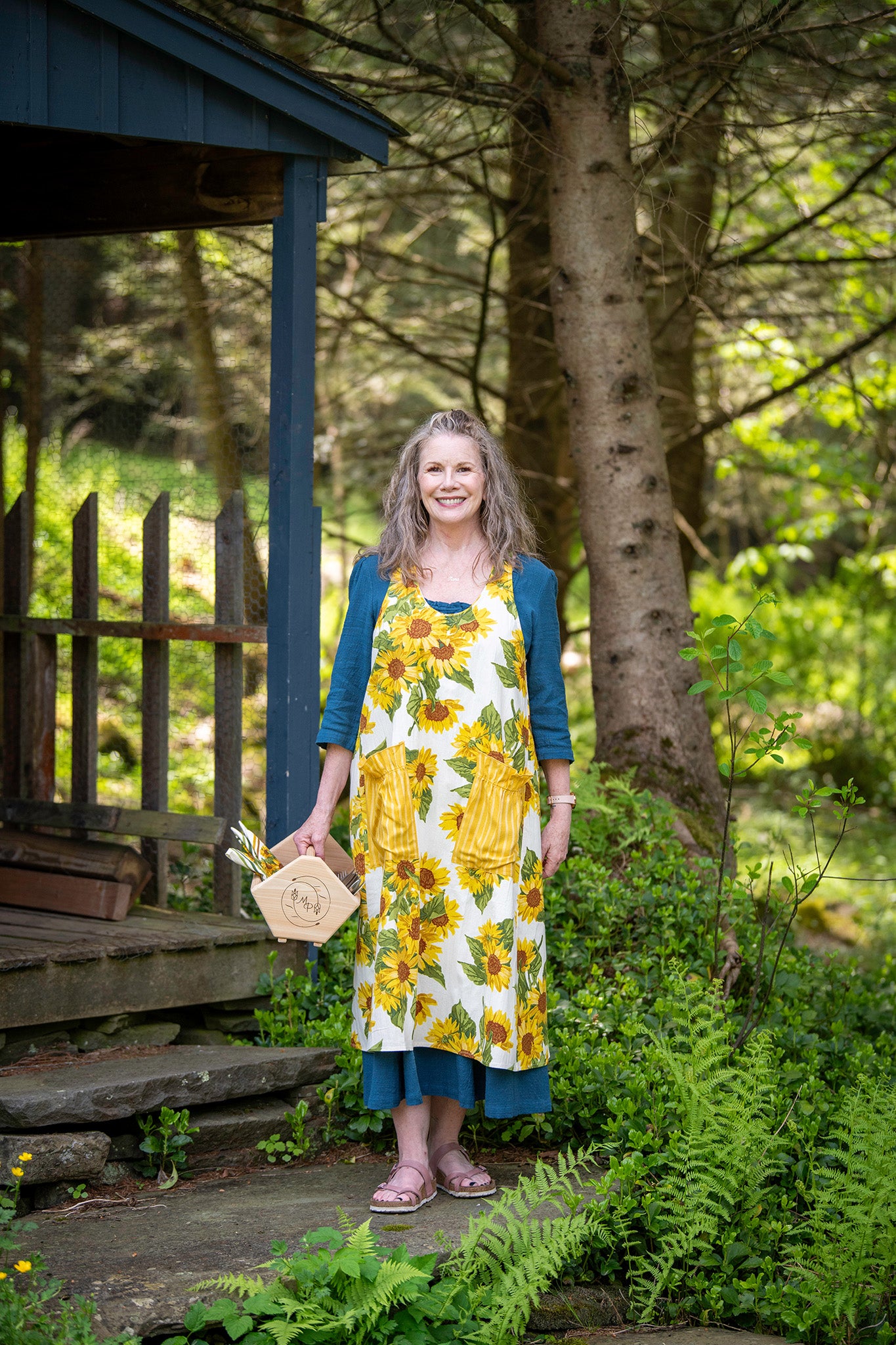 Sunflower Farmhouse Apron in Ivory