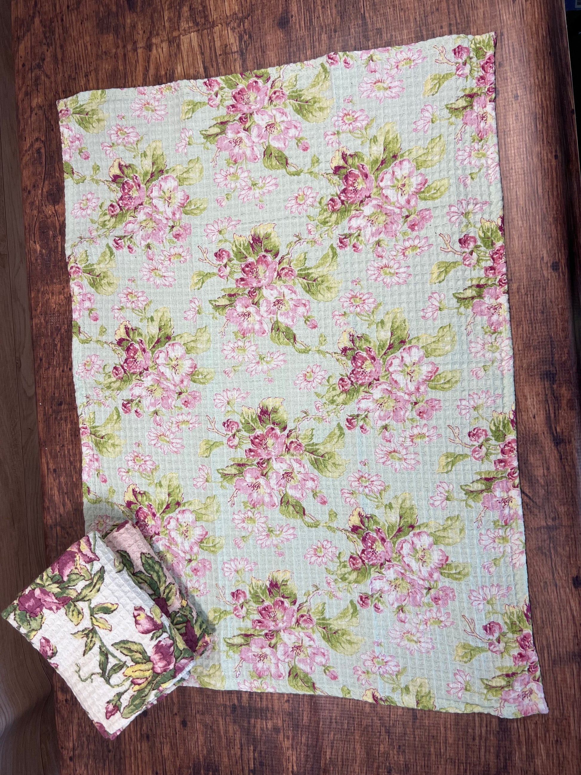 Climbing sweet pea vines in shades of deep rose, soft pink, and fresh mint give this bundle a romantic, cottage-garden feel that's hard to resist. Each full-size towel features a different hand-painted print from the collection, and the cotton honeycomb waffle weave handles everything from Sunday brunch cleanup to Wednesday night spaghetti duty. Three in a set, because the prettiest towel in the kitchen should never be the only one.