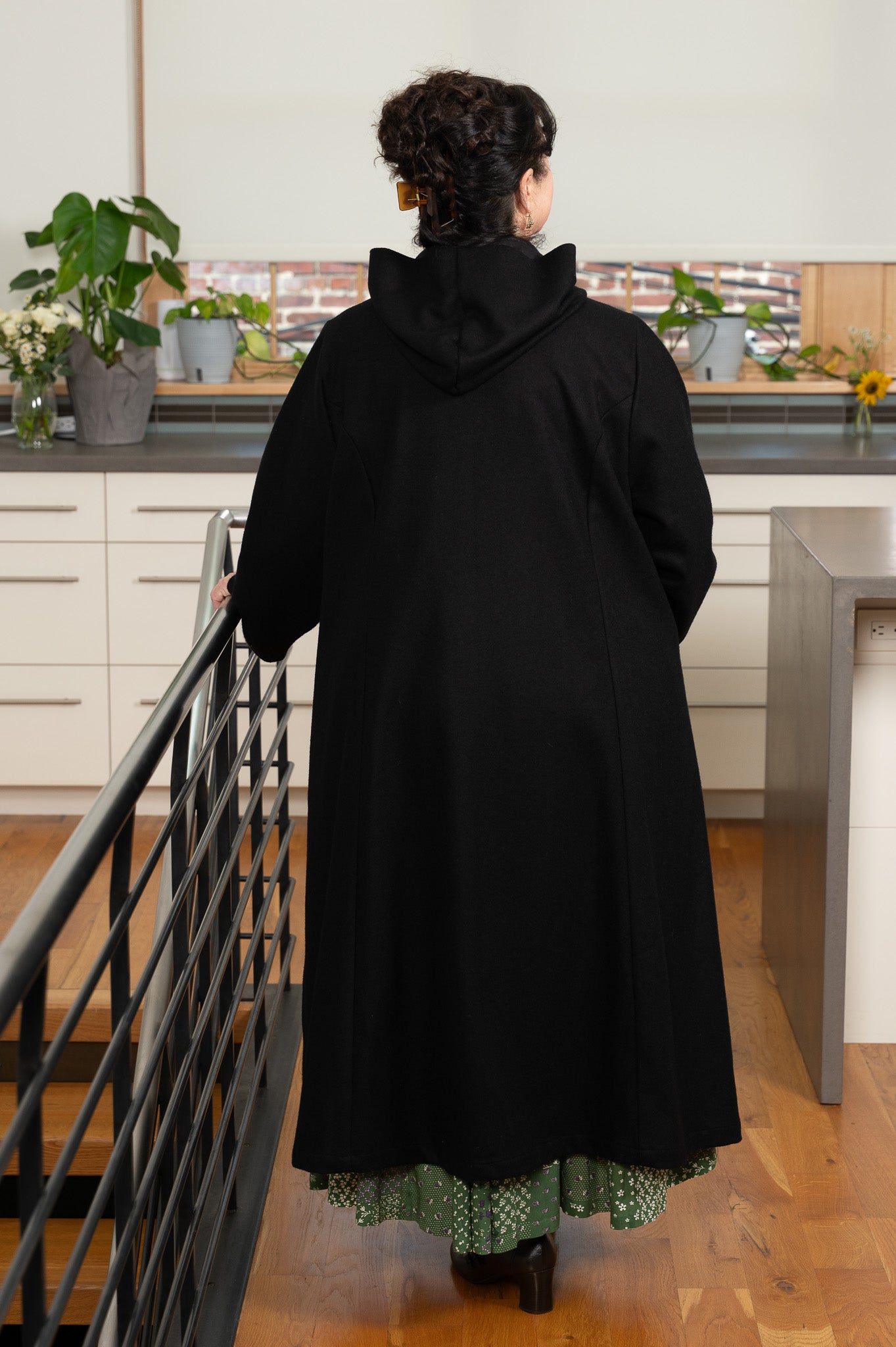 The Bramble Rose Jacket brings timeless warmth and elegance to cool-weather days. Crafted from a soft wool felt blend and lined with breathable cotton voile, it’s as cozy as it is refined. Thoughtful details—like embroidered buttons, a sweeping hood, and princess seams that create a beautifully tailored shape—add a touch of charm and sophistication. With side seam pockets for chilly hands, this coat feels just as at home on a woodland walk as it does heading out for an evening in town.