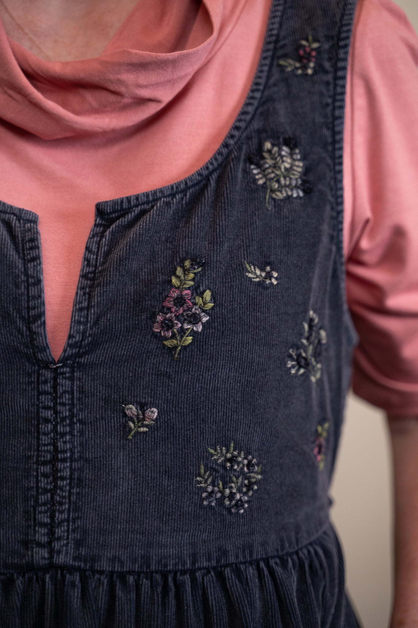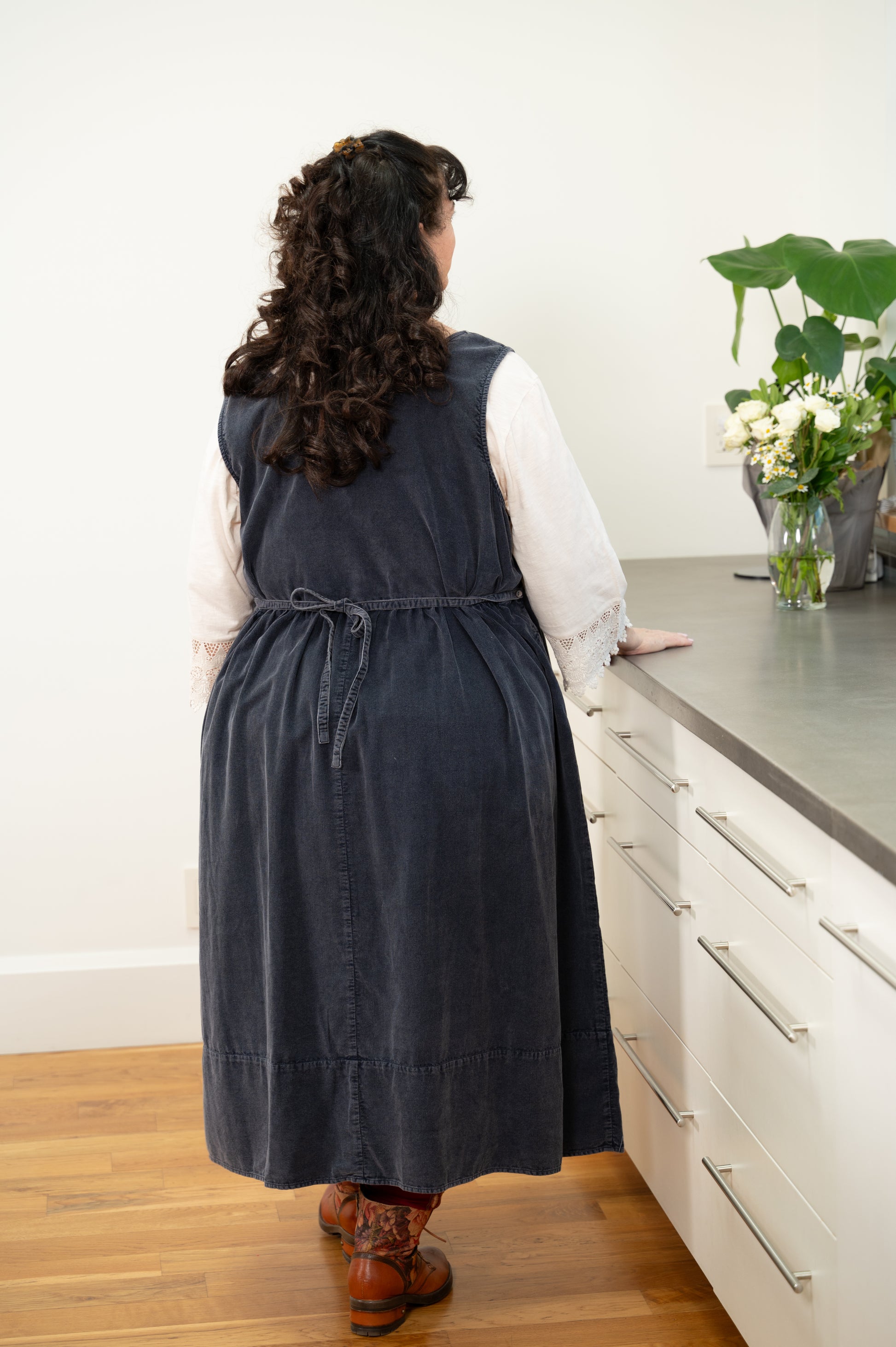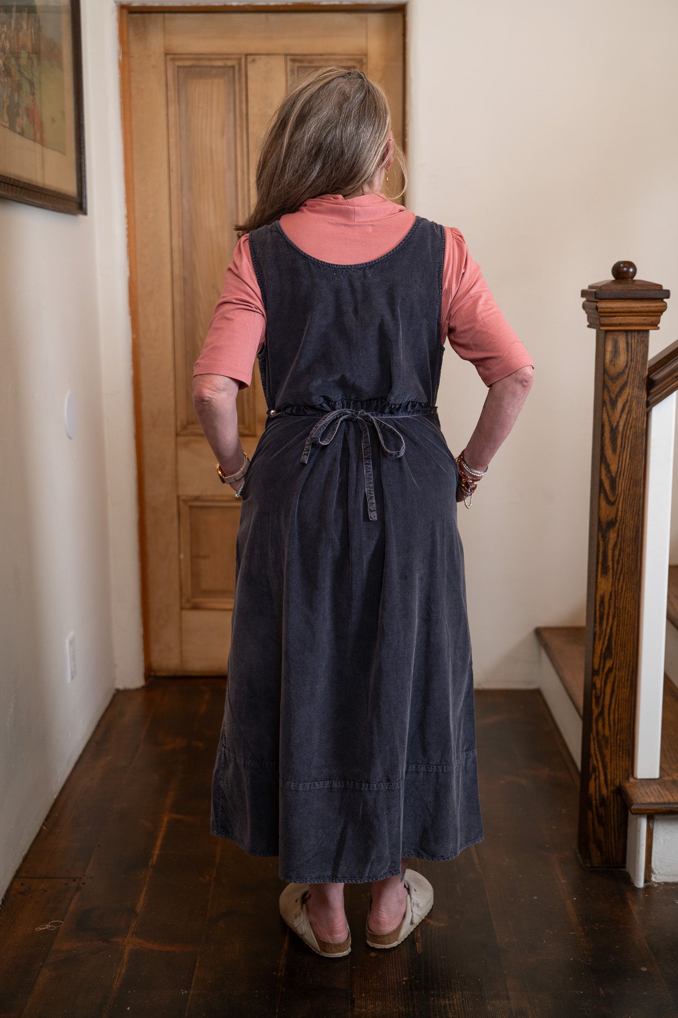 The Gwennie Dress is stitched from 100% cotton corduroy that’s been sun-washed for that soft, lived-in feel from the very first wear. The bodice is graced with delicate embroidery, a touch of artistry that feels both nostalgic and fresh. Gentle gathers at the waist create a graceful, easy drape, while side seam pockets keep it as practical as it is pretty. Sleeveless for year-round versatility, it can be layered over your favorite blouse or worn solo on warm days. A button tie at the back lets you shape the fit to your liking, making this dress a timeless piece that’s as comfortable as it is charming.