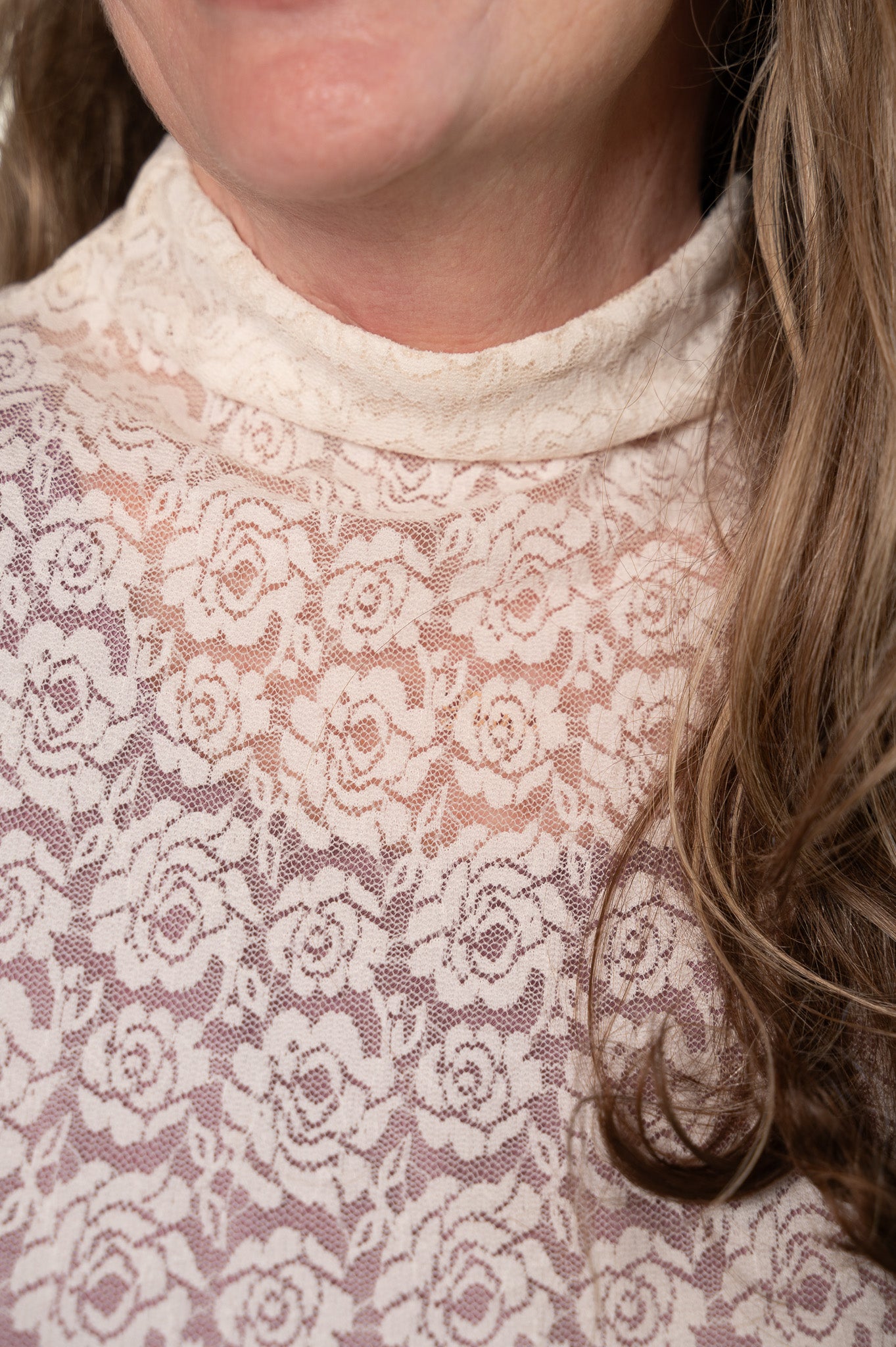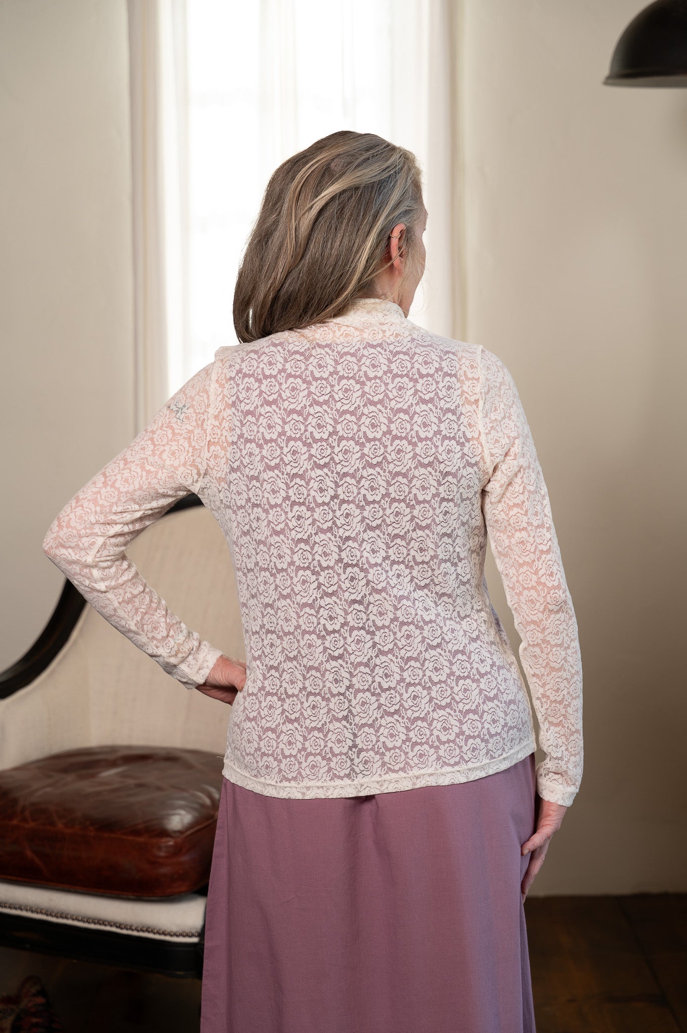 Delicate yet full of quiet confidence, the Heirloom Lace Tee adds a touch of romance to any look. Made from soft Lycra lace netting, it offers just the right amount of stretch for easy layering and all-day comfort. The mock turtleneck and long sleeves lend a timeless silhouette that’s as elegant under a dress as it is over a simple cami. It’s that rare piece that feels both classic and new—lace you’ll want to live in, not just save for special occasions.