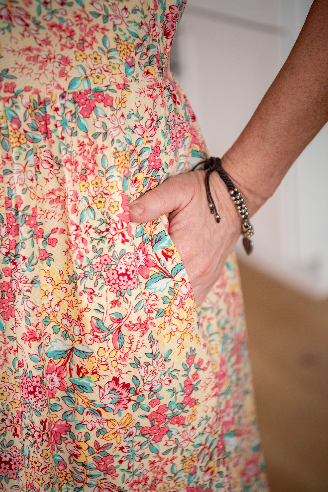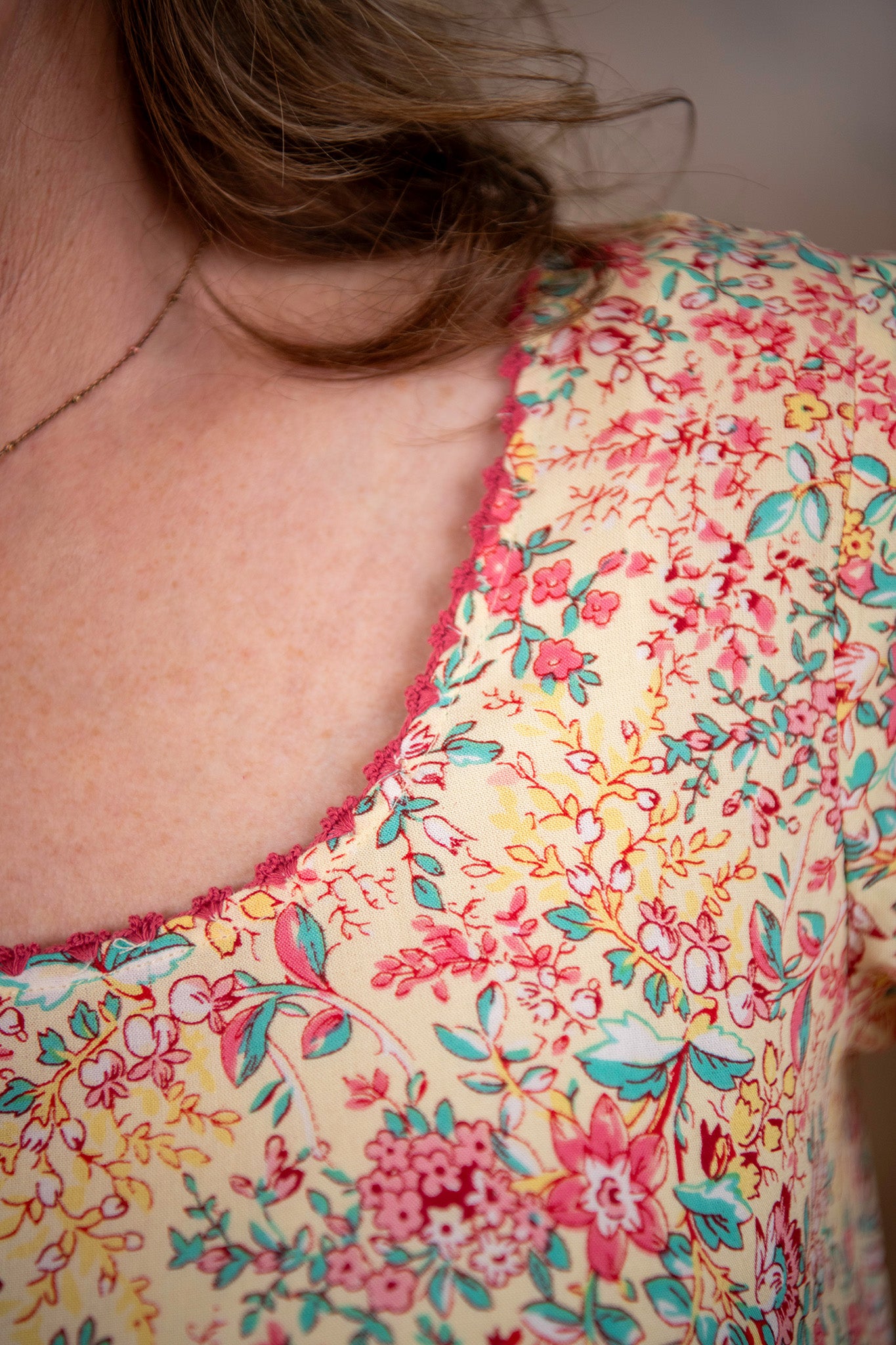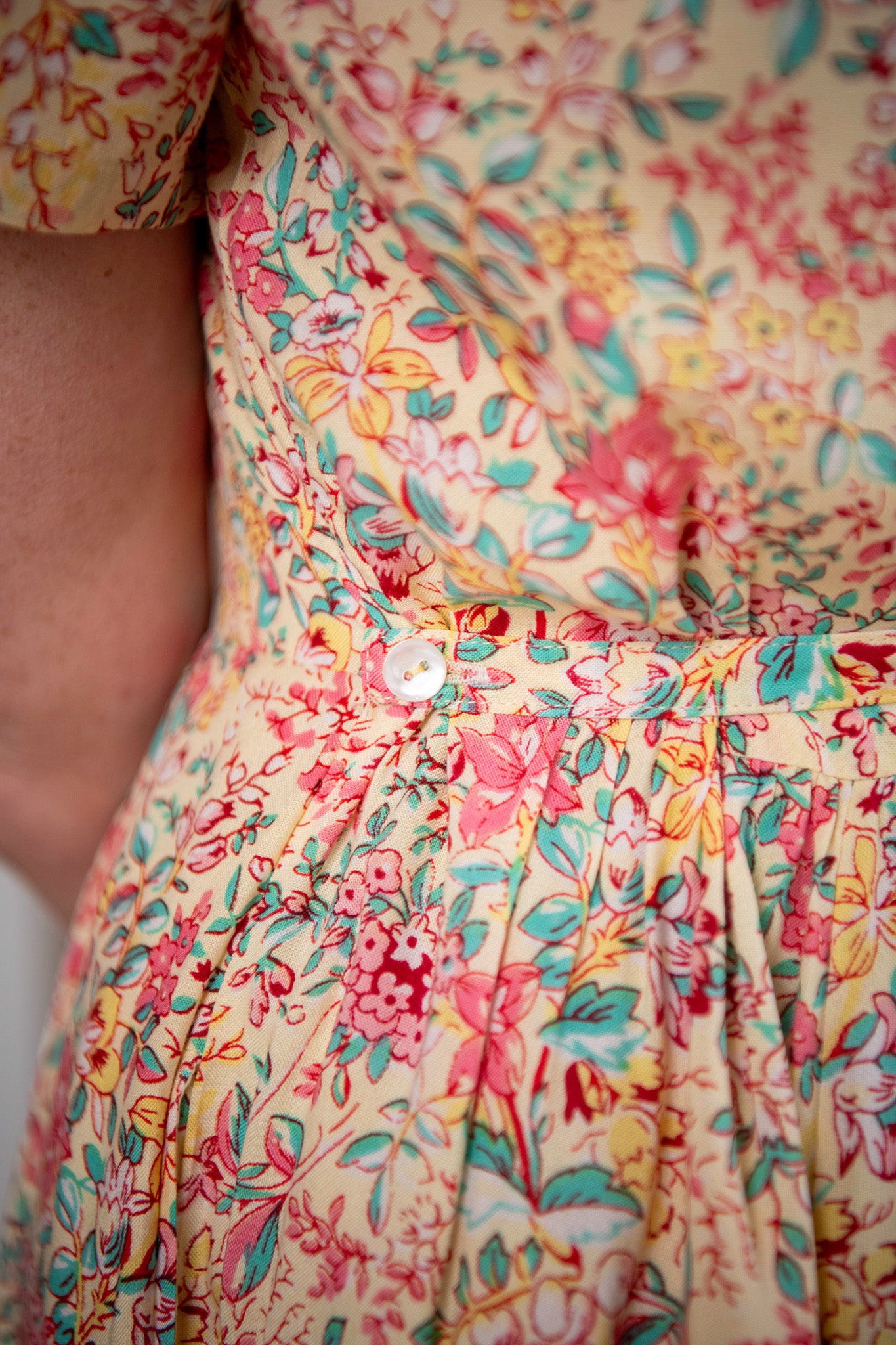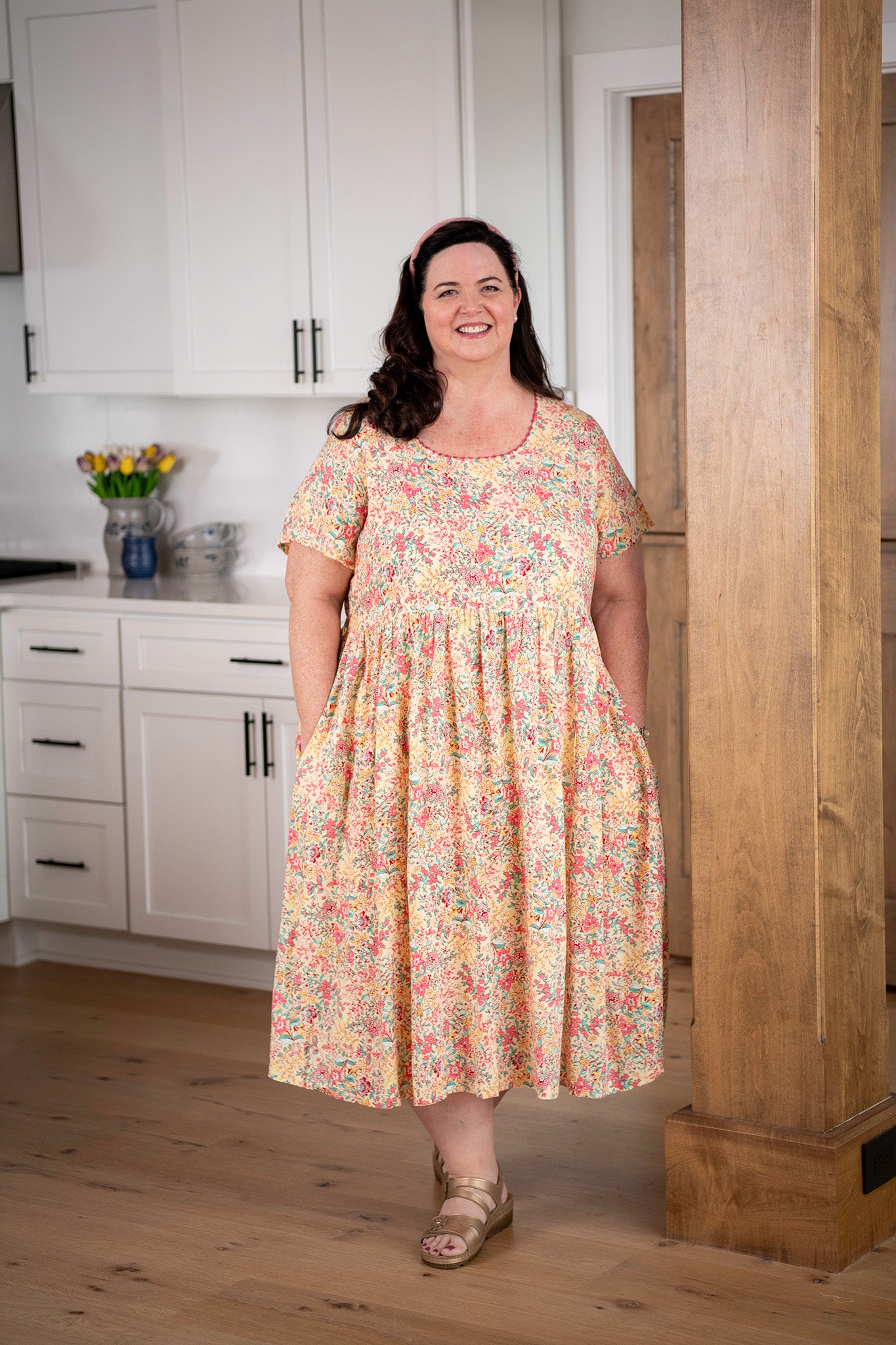 The Penelope Dress is like spring in fabric form—light, airy, and endlessly charming. With its buttercream base and tiny floral print, this dress is designed for sun-filled days and easy elegance. The scoop neckline, short sleeves, and flattering gathered waist make it an everyday favorite, whether you're off to the farmer’s market or enjoying a slow morning with a good book.