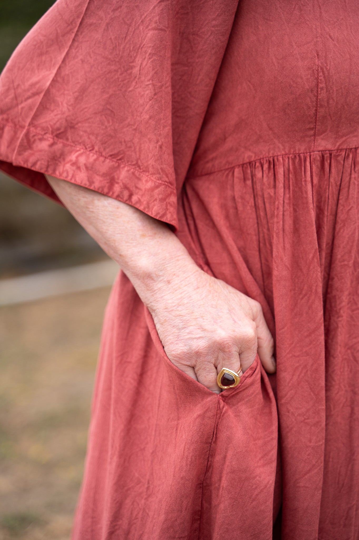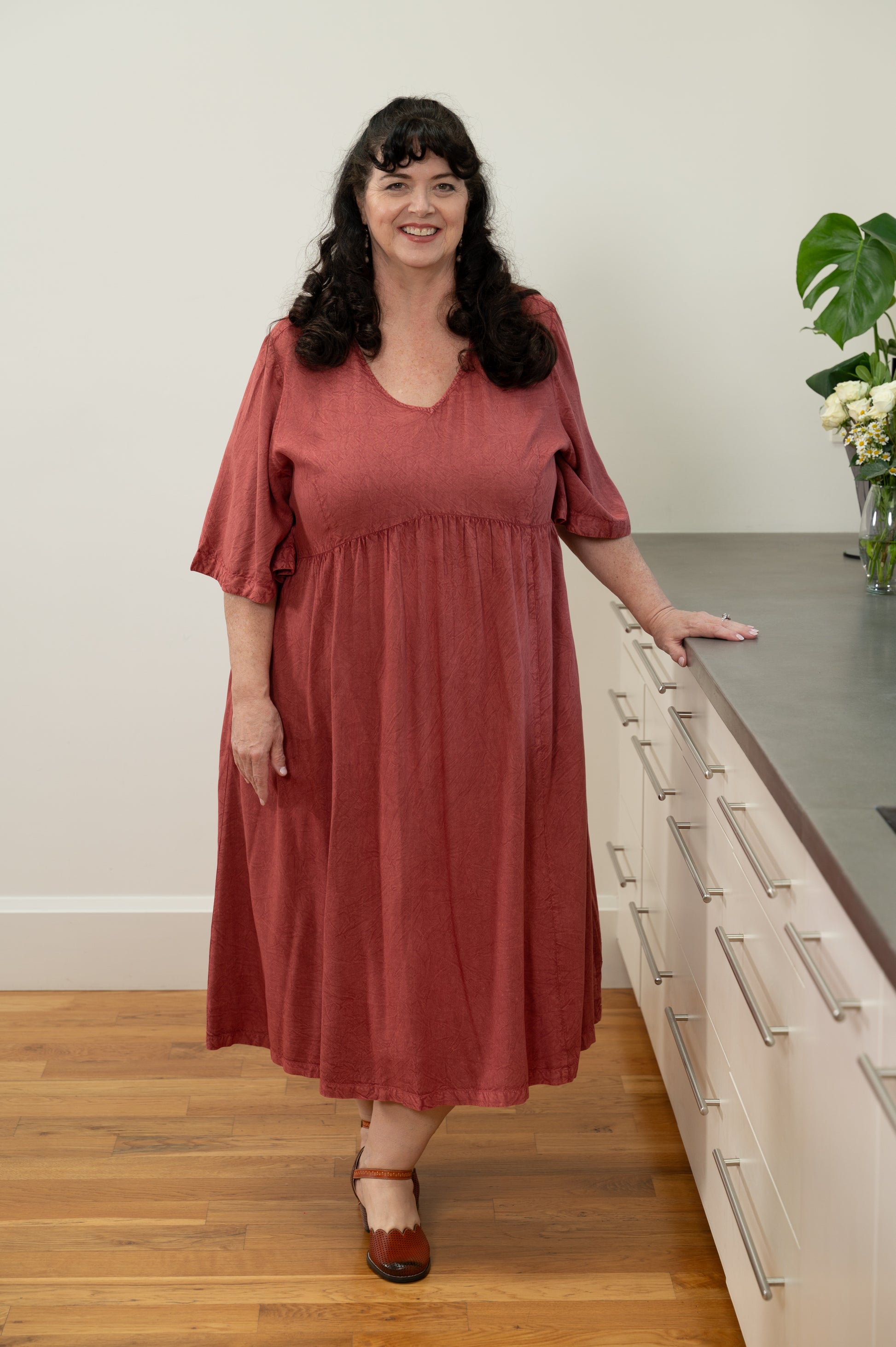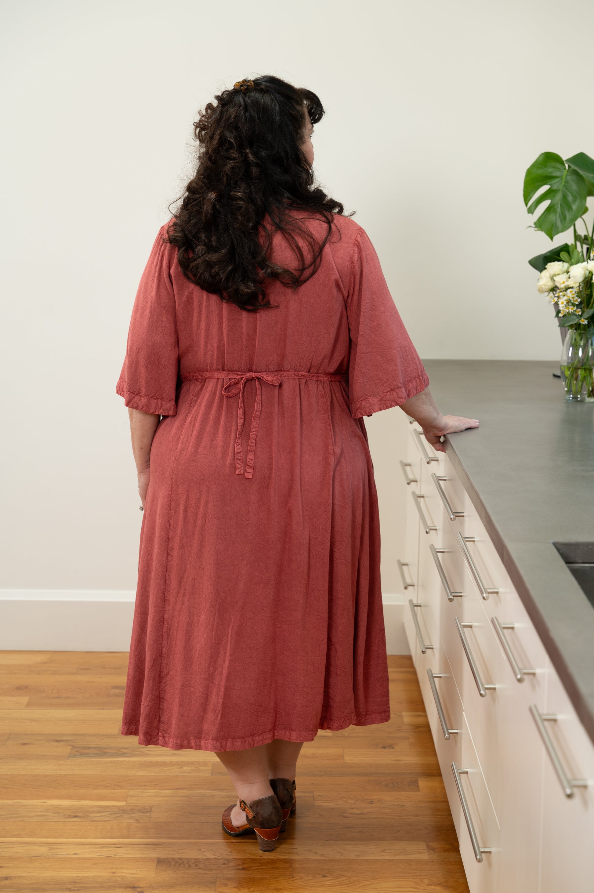 The Spirited Rose Dress is all about easy elegance with a touch of countryside charm. Designed in a soft, flowy silhouette that flatters and moves with you, it features a deep rose hue that feels both grounded and uplifting. Wide, airy sleeves and a relaxed empire waist create a timelessly feminine shape, while hidden side pockets add a dash of everyday practicality. It’s the kind of dress that feels at home whether you’re wandering through the garden, hosting a gathering, or heading into town with boots on your feet and confidence in your step.