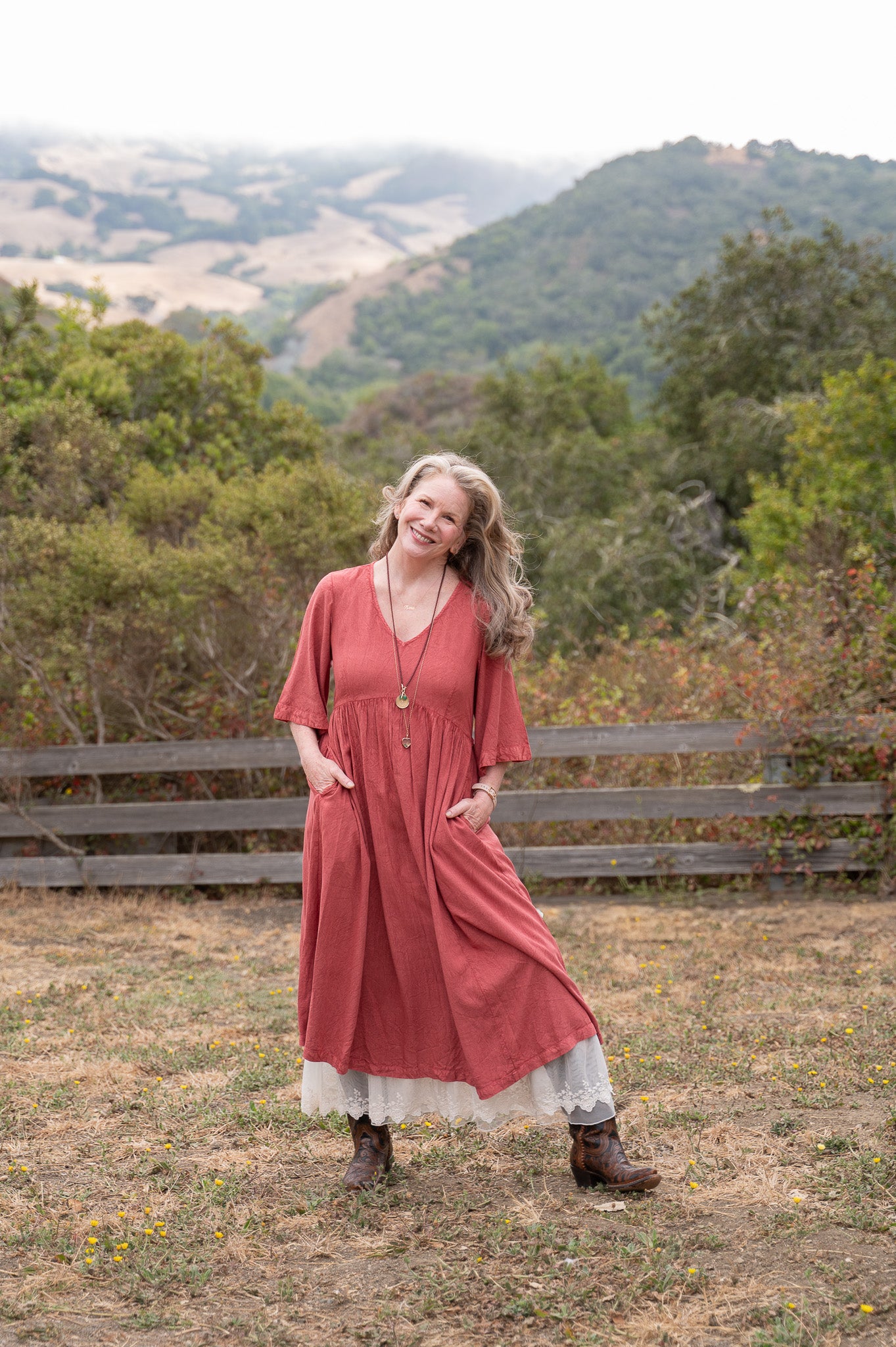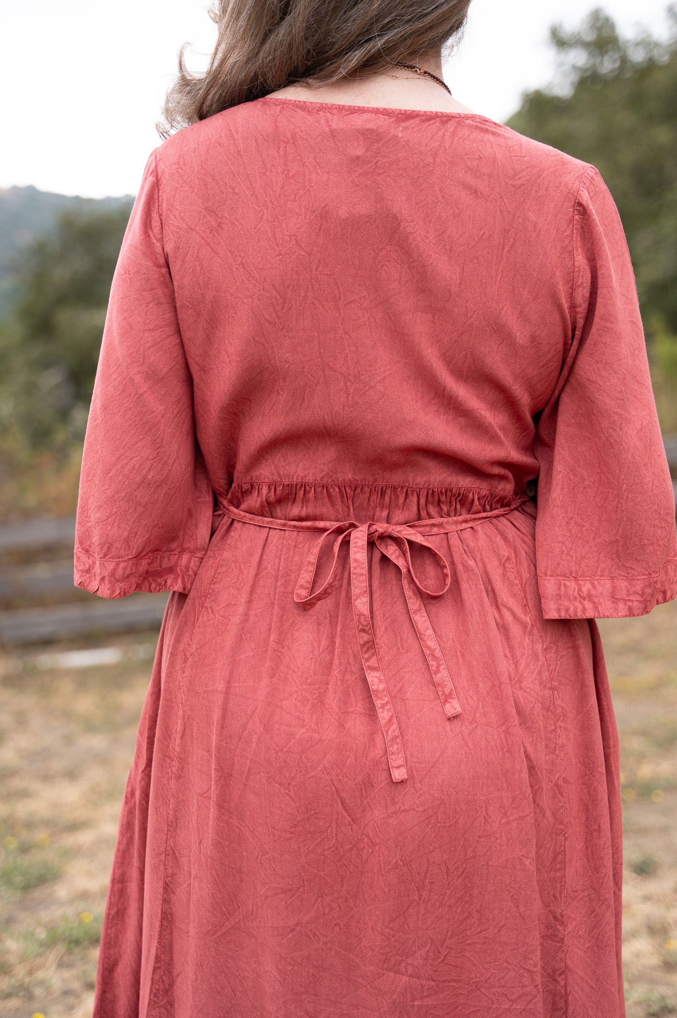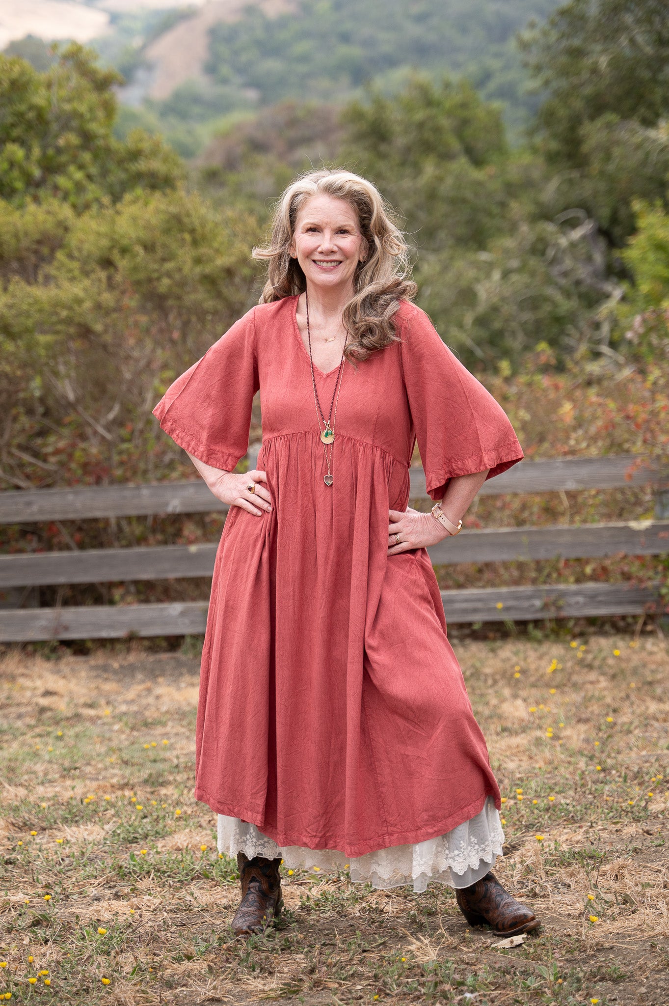 The Spirited Rose Dress is all about easy elegance with a touch of countryside charm. Designed in a soft, flowy silhouette that flatters and moves with you, it features a deep rose hue that feels both grounded and uplifting. Wide, airy sleeves and a relaxed empire waist create a timelessly feminine shape, while hidden side pockets add a dash of everyday practicality. It’s the kind of dress that feels at home whether you’re wandering through the garden, hosting a gathering, or heading into town with boots on your feet and confidence in your step.