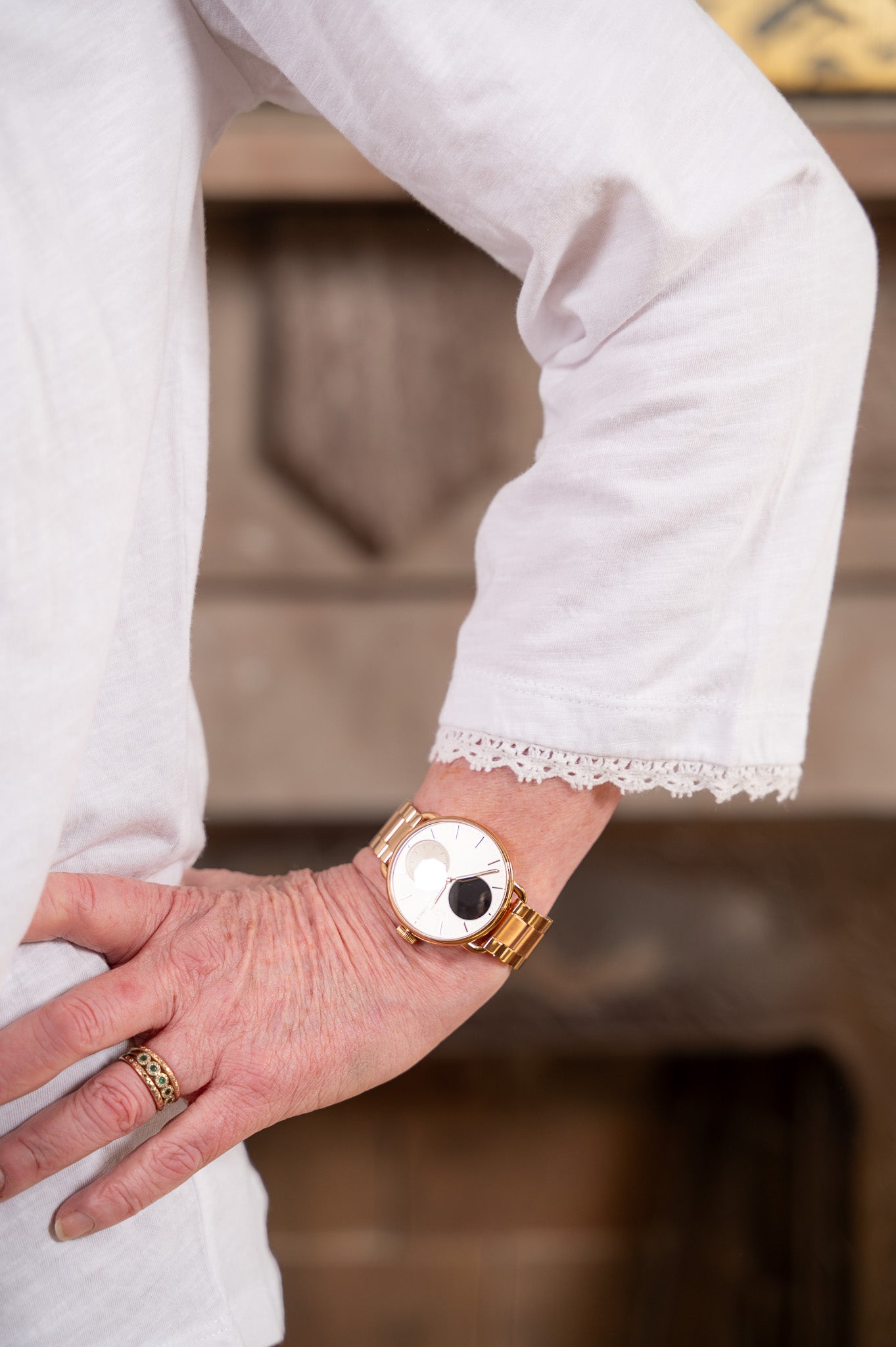 Crisp, fresh, and endlessly versatile. Soft white cotton with a relaxed drape and a yoke full of lovely detail, where delicate floral embroidery and lace insets catch the light in the prettiest way. Crochet trim at the three-quarter sleeve cuffs and a chalk button with keyhole closure at the back of the neck give this tee a sweetness that elevates the everyday. Fits true to size, tucks into skirts, floats over leggings, and looks gorgeous under a denim jacket. The white top you'll actually get excited about wearing.