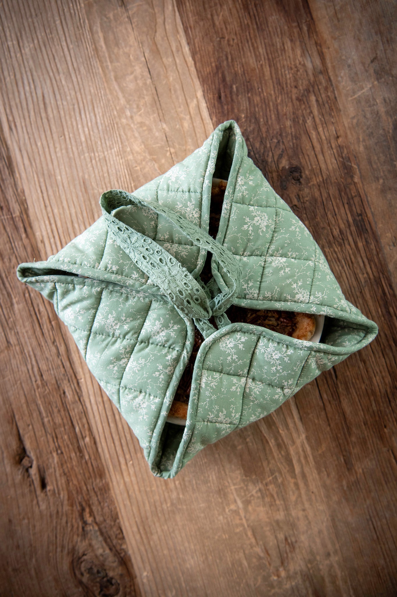 So useful and beautiful, this handy pie carrier helps to keep food warm, and there's even an internal pocket to include a recipe card or special note if you wish to make this carrier a thoughtful gift.